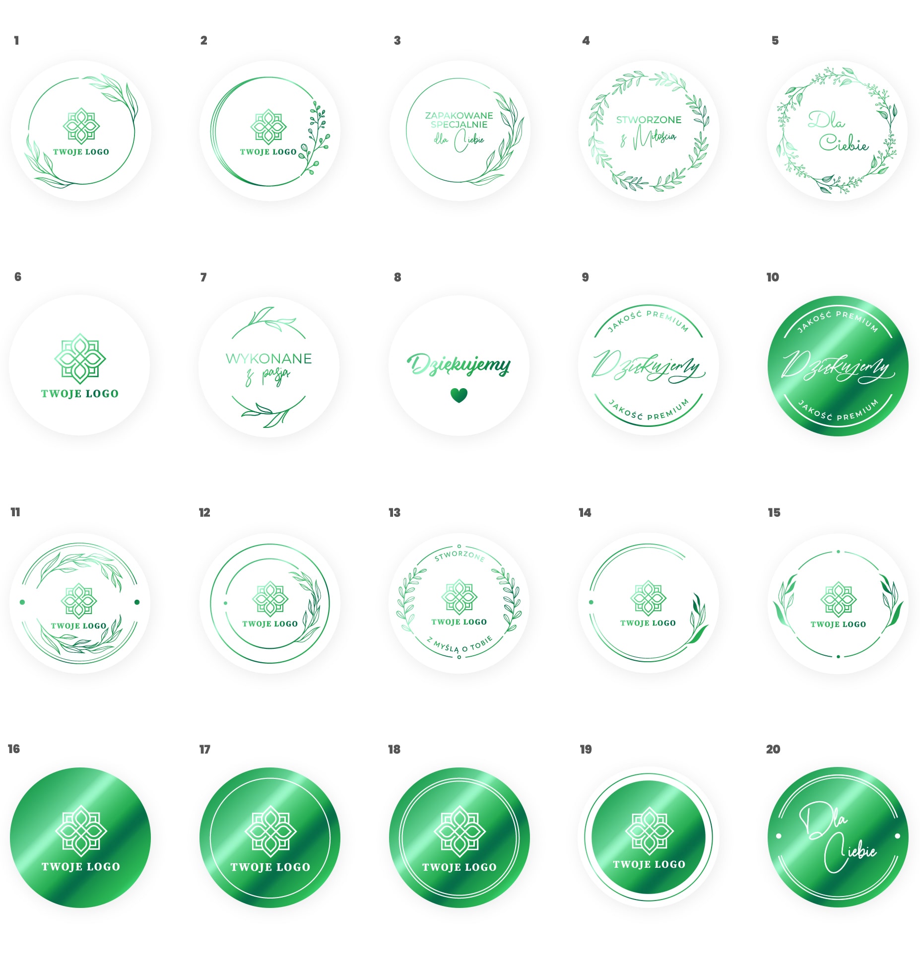 Наклейки позолоченные с вашим логотипом 30 х 30 мм, фольга зеленая люкс + дизайн