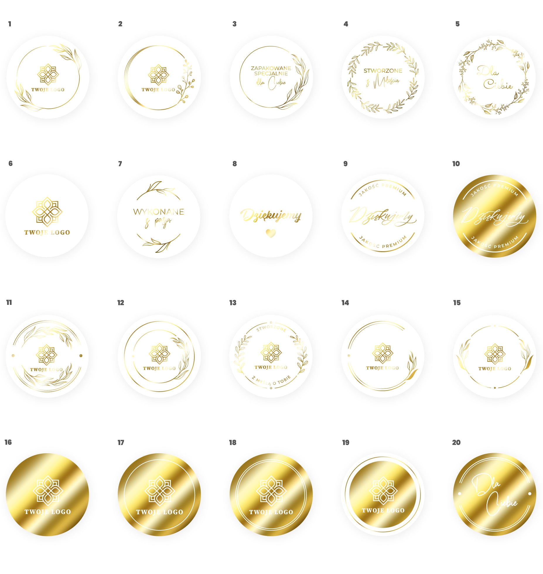 Эксклюзивные наклейки на ваши изделия с вашим логотипом и позолотой выбранной фольгой.