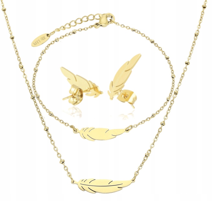 ПОЗОЛОЧЕНИЙ НАБІР ПРИКРАС 3 шт. ПІР'ЯНІ КУЛЬКИ ХІРУРГІЧНА СТАЛЬ ПІР'Я