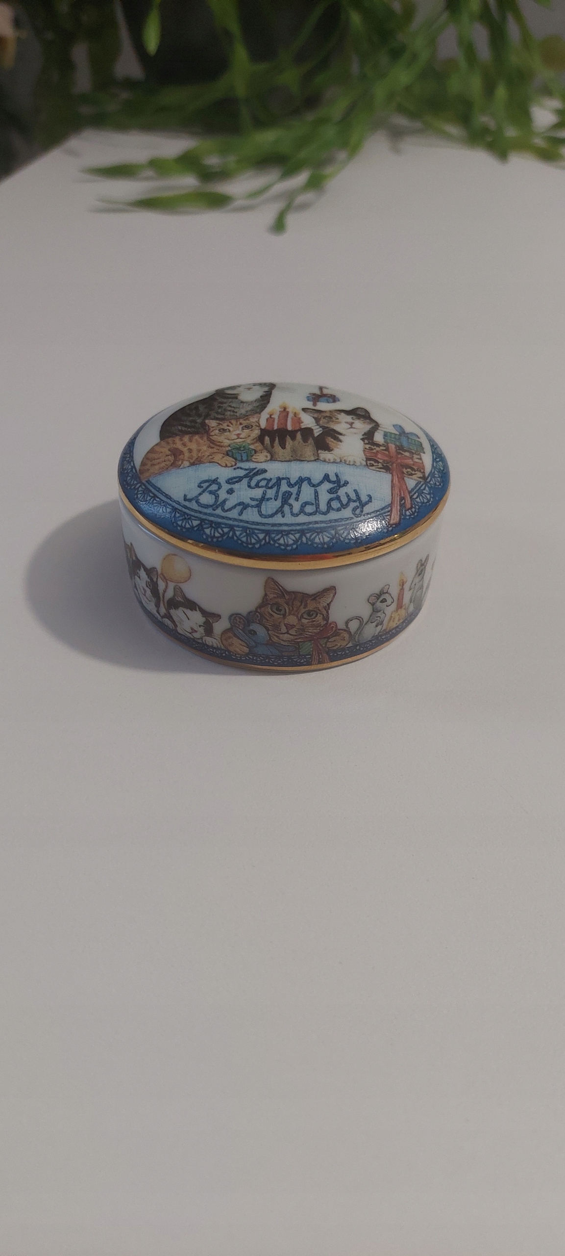 Шкатулка с музыкальной шкатулкой в очень хорошем состоянии, размеры: высота 4 см, диаметр 7 см.