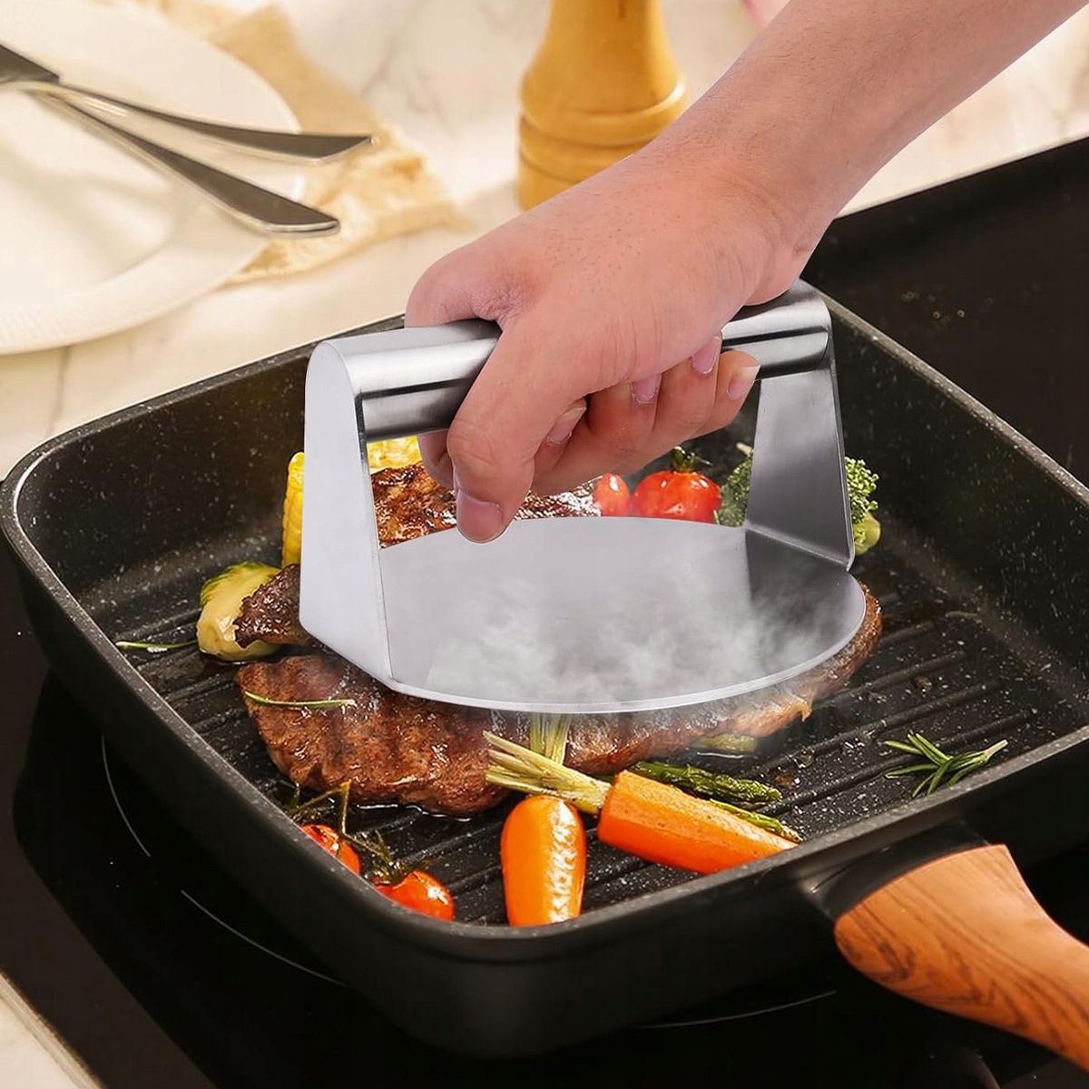Практическая стальная пресса для гамбургера. Благодаря этому вы можете легко сформировать котлеты правильной толщины и размера.