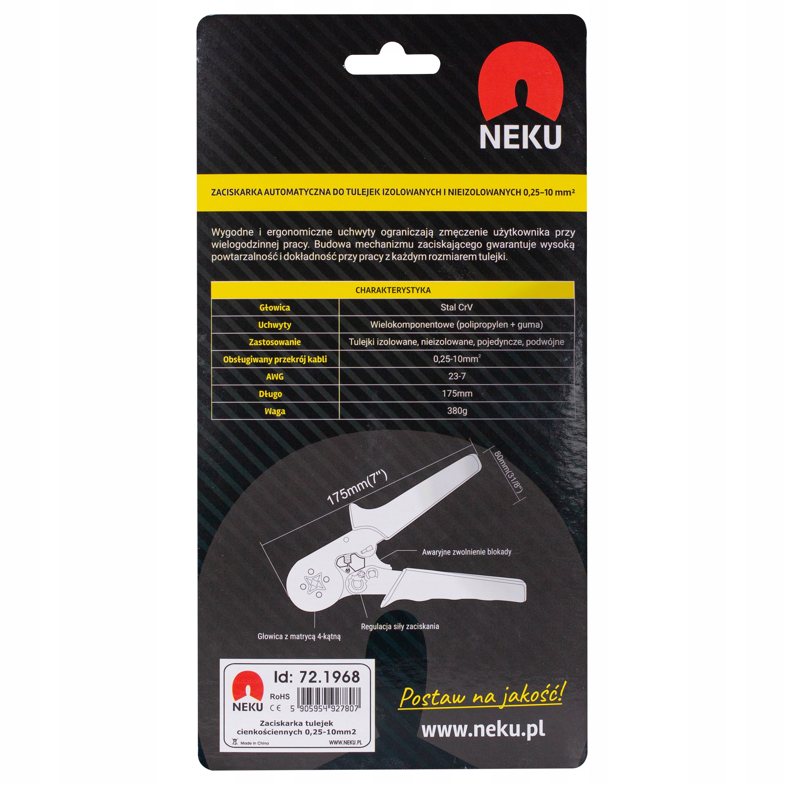 кабельные рукава Neku невозможно Профессионалы и домашний DIY. Отлично работает для электрических установок, позволяя точным и точным установить соединения. /b> в терминах 0, 25-10 мм² . Оснащенная четырехугольной матрицей , обеспечивает твердое и постоянное затягивание кончиков, что гарантирует надежность изготовленных разъемов. Эргономичная форма делает работу удобной даже при более длительном использовании