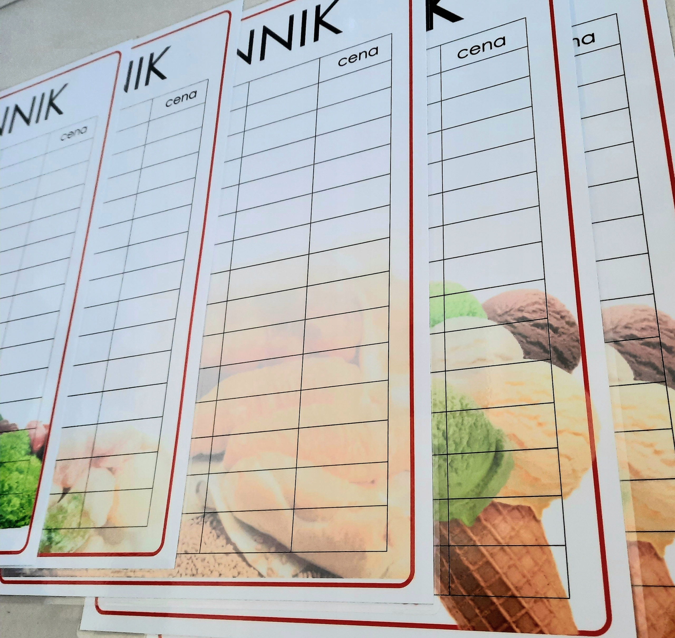 - центрированные поля и ламинация обеспечивают долгий срок службы прайс-листов