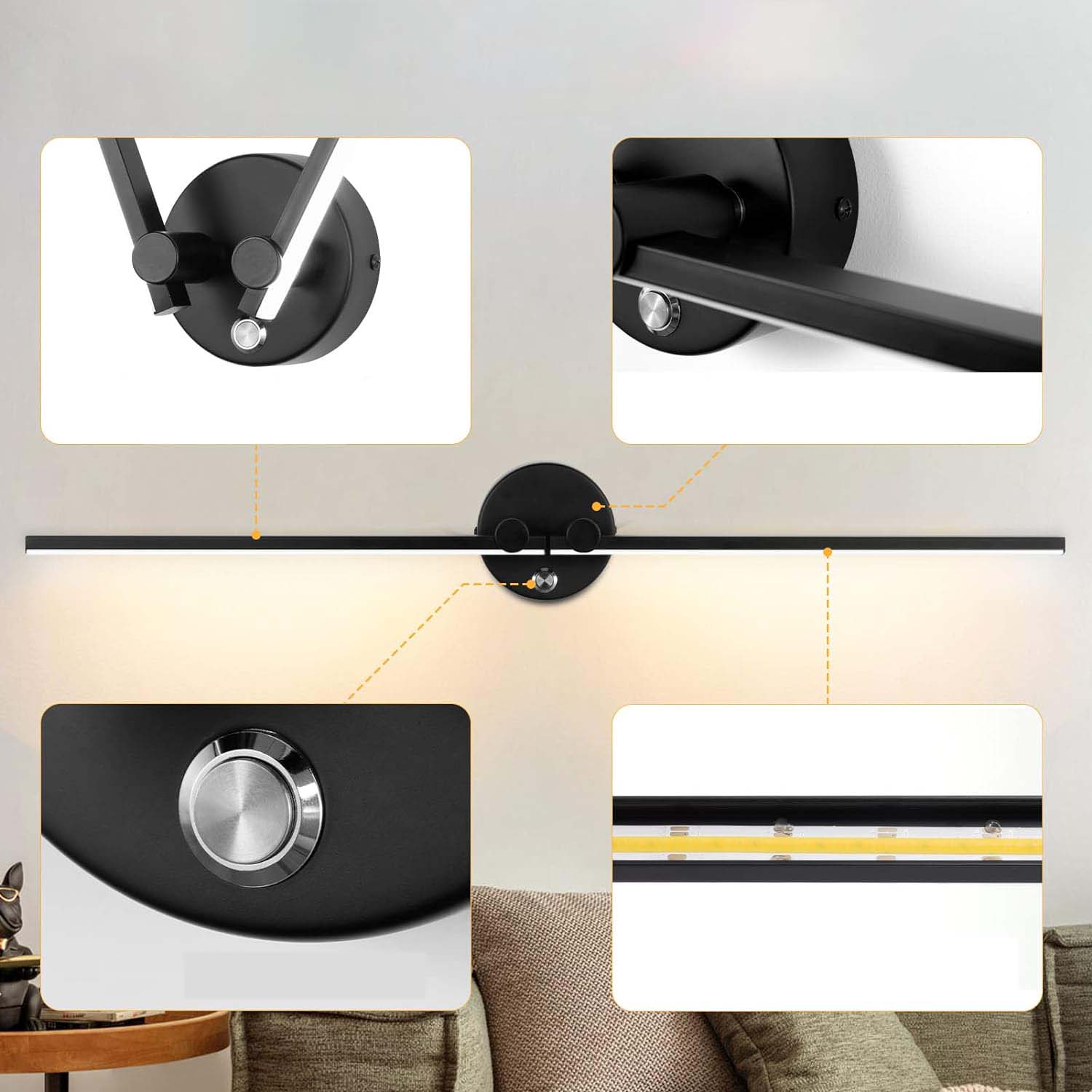 постоянно подключено с выключателем, свободно вращающейся настенной лампой 300 ° над зеркалом, настенный освещение к гостиной, спальню, коридор, коридор, коридор 4000 тыс. P>