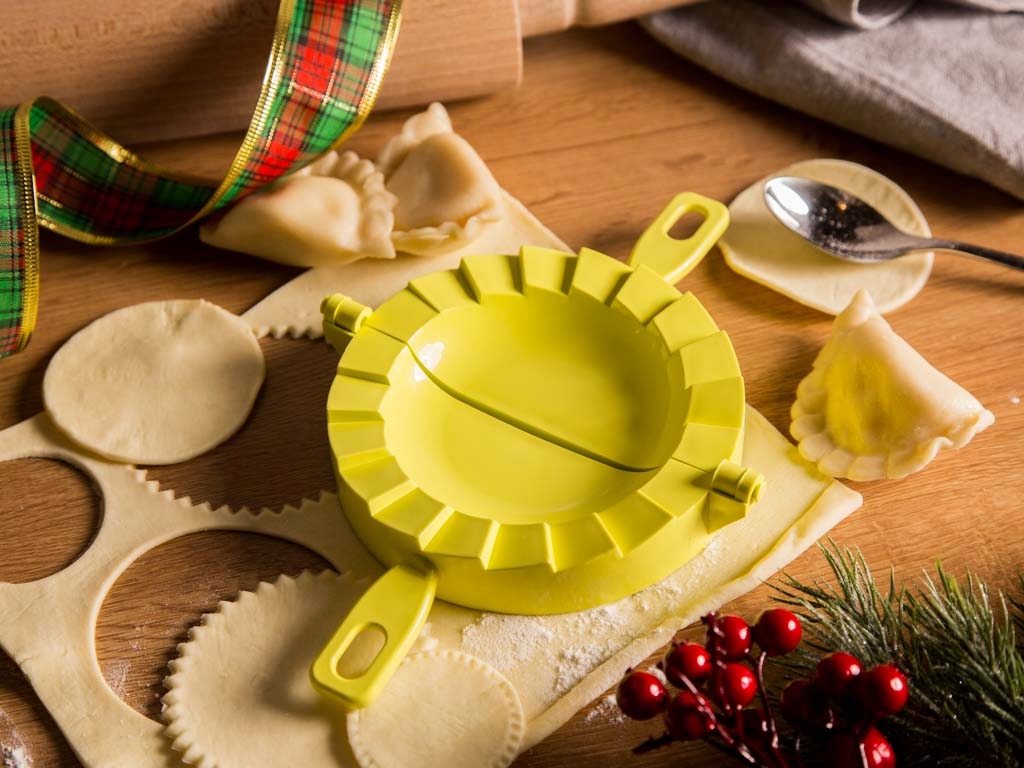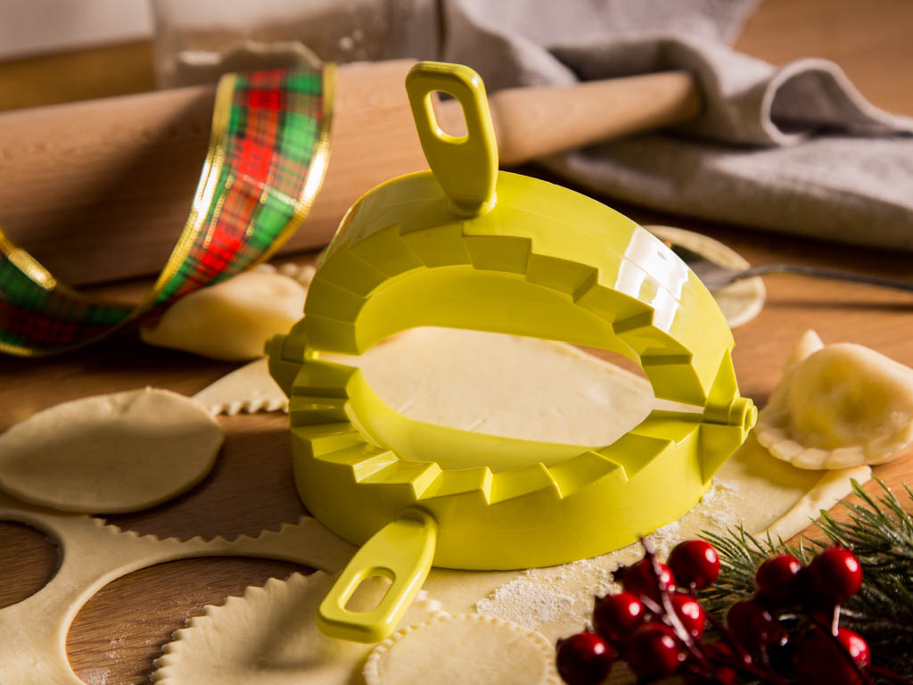 Лучший вкус ручной работы, хотя заминка тесто очень много времени. надежный инструмент на каждой кухне посвящен формованным пельмени Практической машины . Просто положите форму на тесто и начинку, выжмите все и готово.