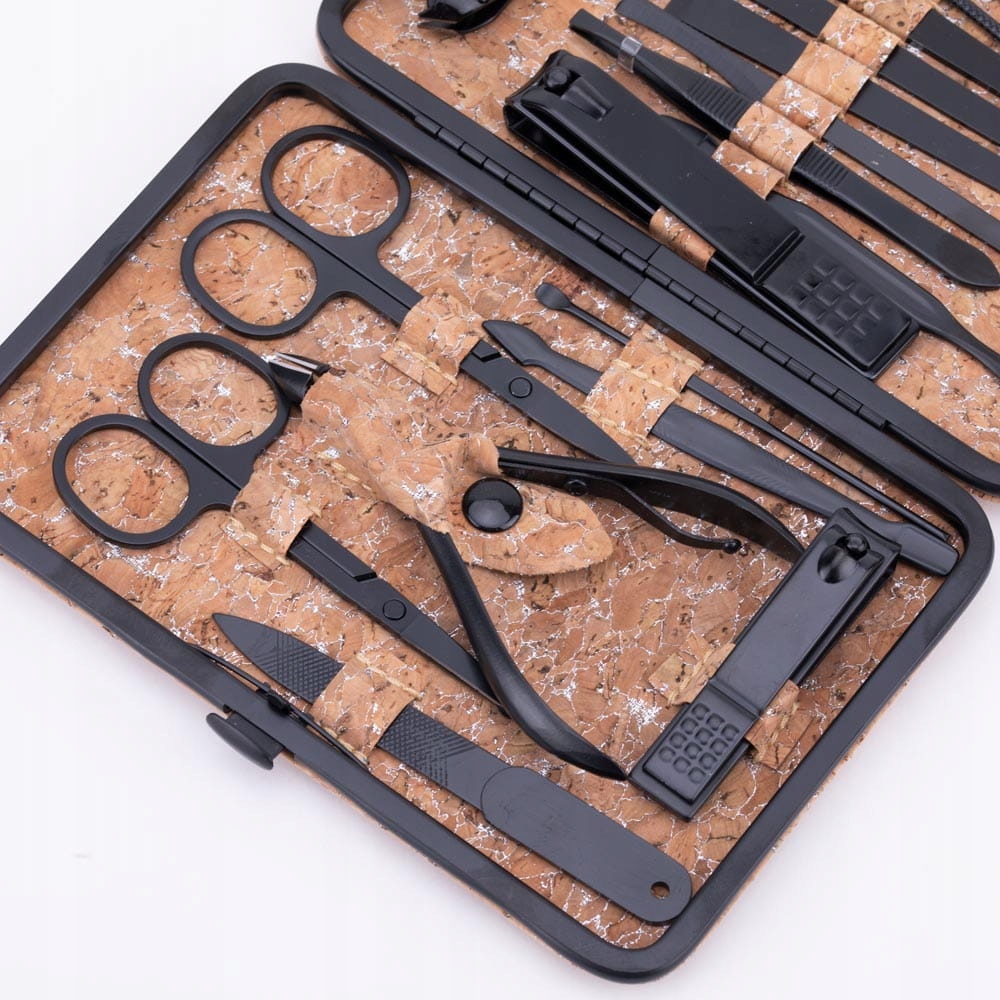 установите 18 чрезвычайно элегантные, черные, матовые косметические аксессуары, которые полностью позаботятся о ваших руках, ногах и лицом. С помощью этого набора вы сократите ногти, формируете их, удалите сухую кожу и приготовьте ногти для дальнейшего ухода. Инструменты, изготовленные из нержавеющей стали, являются чрезвычайно постоянным , износостойким и matting , а также на механических травмах . Кроме того, материал составляет гипоаллергенный , поэтому его можно использовать даже людьми с очень чувствительной кожей.