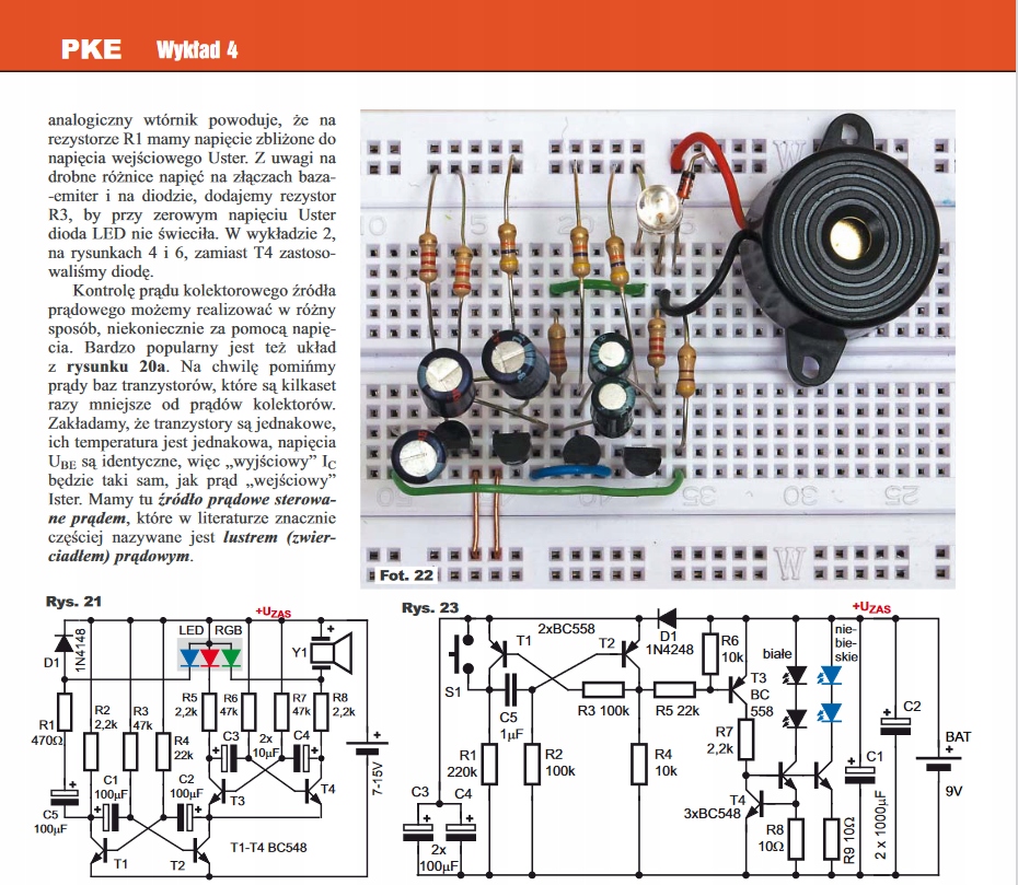Это практический курс электроники (PKE) с упором на практические навыки. , потому что каждый Урок состоит из проекта и лекции с упражнениями, где проект представляет собой определенную электронную систему, собираемую и активируемую самим "учеником".