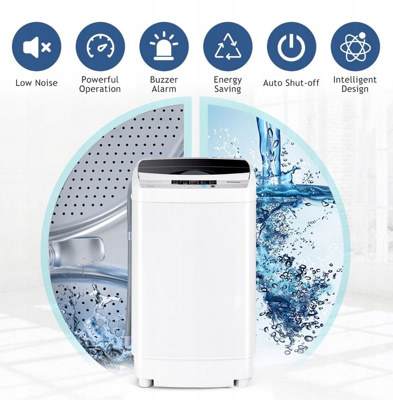 подходит для многих мест благодаря компактному дизайну: благодаря компактному и легкому дизайну, который вы можете поместить и переместить стиральную машину в любом месте. Вам нужно только небольшое пространство для их хранения, которое является хорошим решением для многопользовательских комнат, гостиных, квартир, кемпинговых автомобилей и не только.