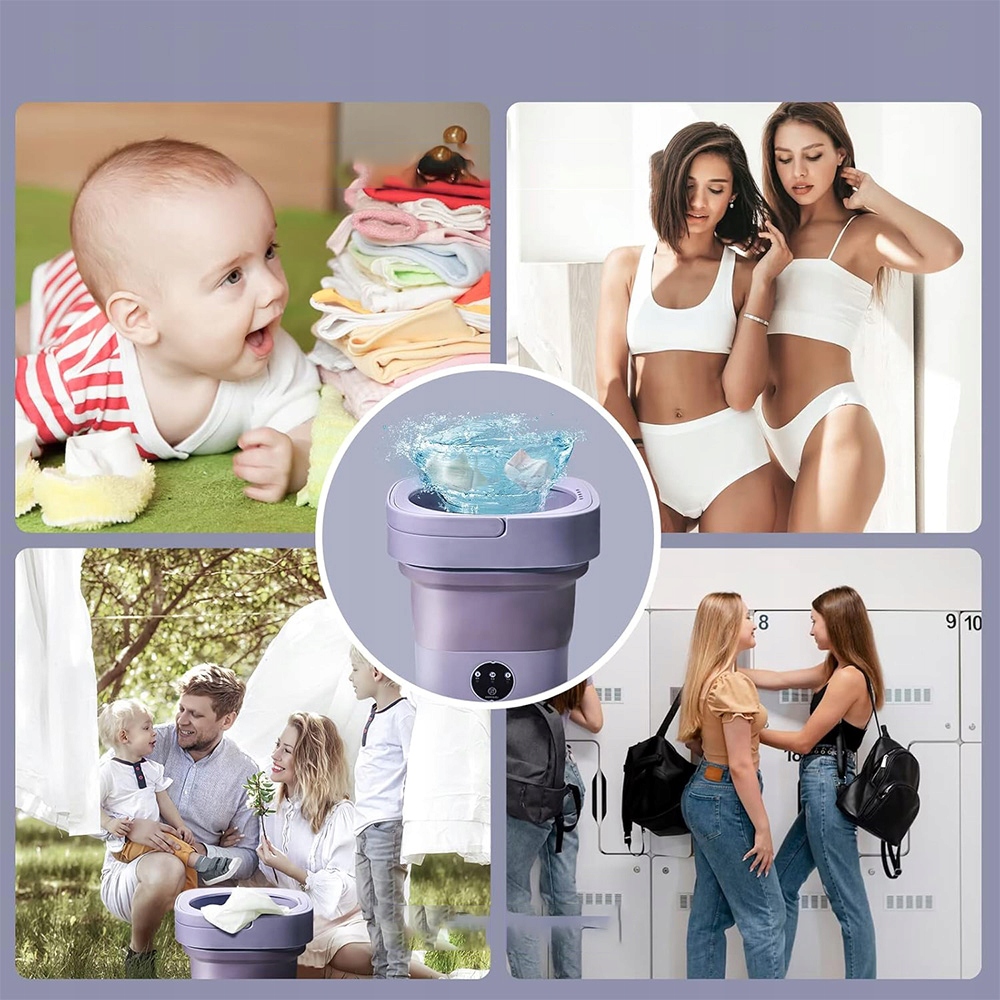 нашу мобильную стиральную машину можно сложить и хранить для экономии места. Благодаря емкости 6,5 литров процесс стирки происходит бесшумно и экономит воду, энергию и время. Идеально подходит для путешествий, в общежитиях, фургонах и кемпингах.