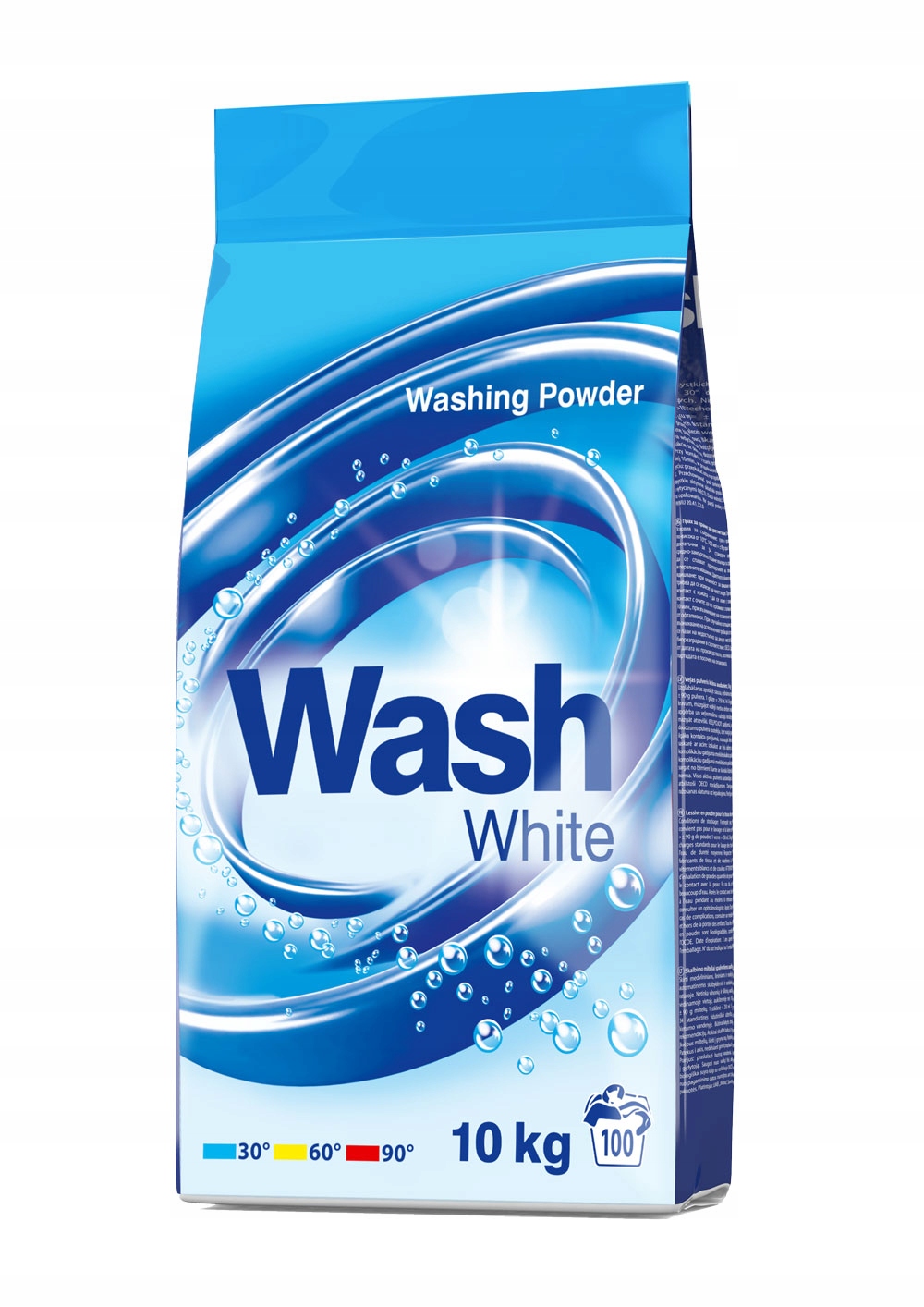 WASH 10KG стиральный порошок предназначен для стирки белых тканей во всех видах стиральных машин, а также для ручной стирки, при температуре от 30° до 90°С для хлопчатобумажных, льняных тканей и смесовых волокон.
