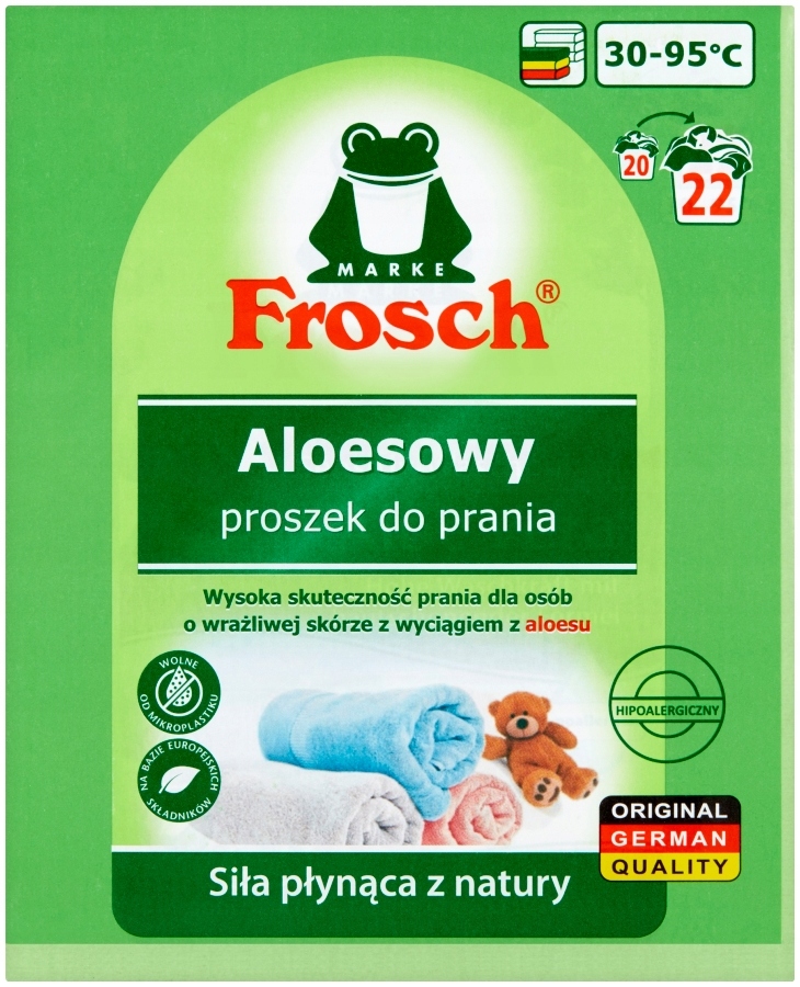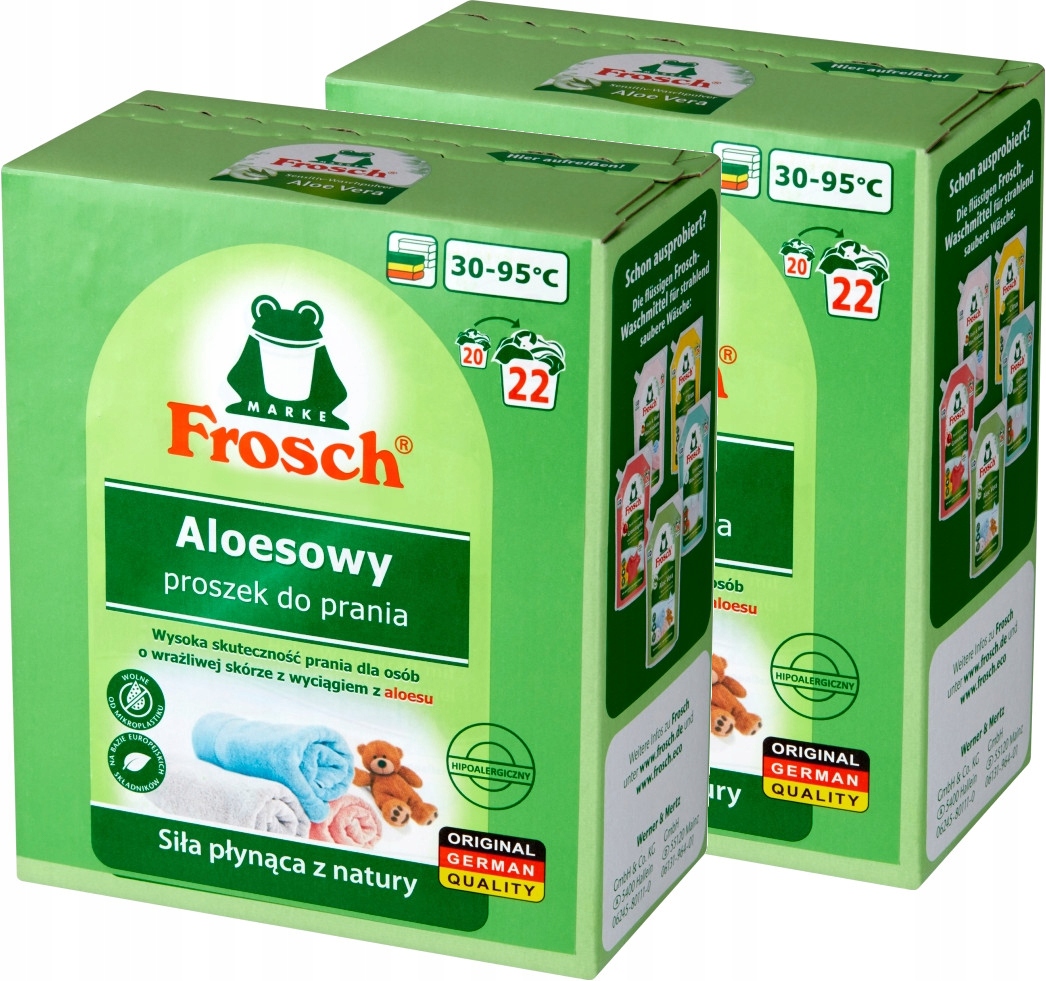 Стиральный порошок Frosch German Aloe Vera Sensitive для цветного и белого белья, гипоаллергенный — набор из 2x22 стирок