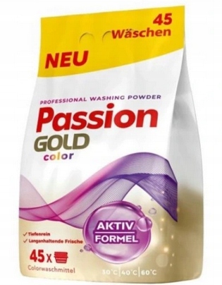 Профессиональный и очень эффективный стиральный порошок Passion Gold Color Aktiv Formel. Инновационная моющая формула, глубоко проникающая в волокна.