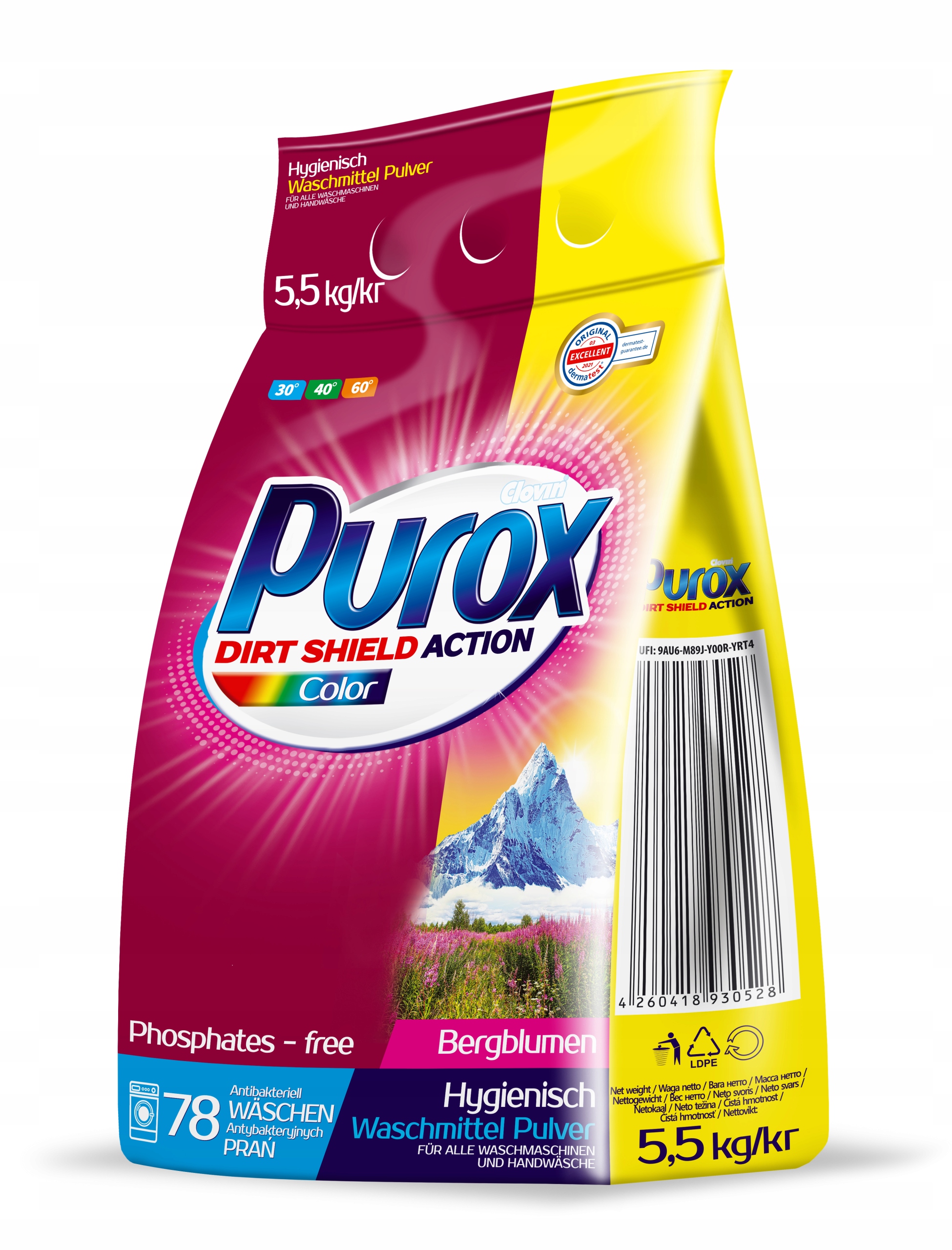 Purox Color был создан с учетом требований по защите окружающей среды. Его современная формула не содержит цеолитов и фосфатов, поскольку эти ингредиенты трудно биоразлагаемы и вредны для биологического разнообразия рек и озер. Продукт рекомендуется всем потребителям, которые заботятся о красоте природы и используют экологически чистую продукцию. Порошок также содержит ингредиенты, которые защищают стиральную машину и обогреватель от отложений известкового налета, поэтому нет необходимости использовать средство для удаления накипи. Это напрямую влияет на долговечность и надежность стиральной машины.