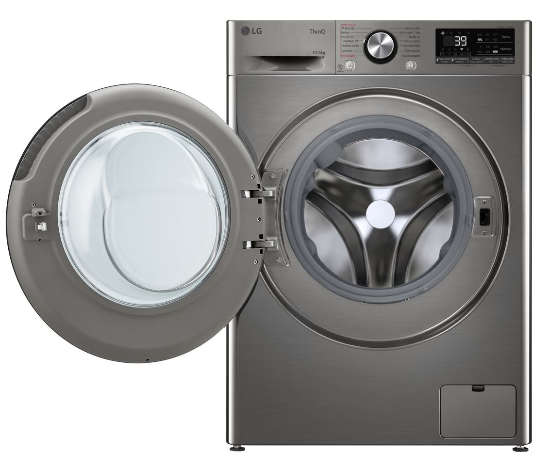 - Отдельностоящая стиральная машина с сушилкой серебристого цвета