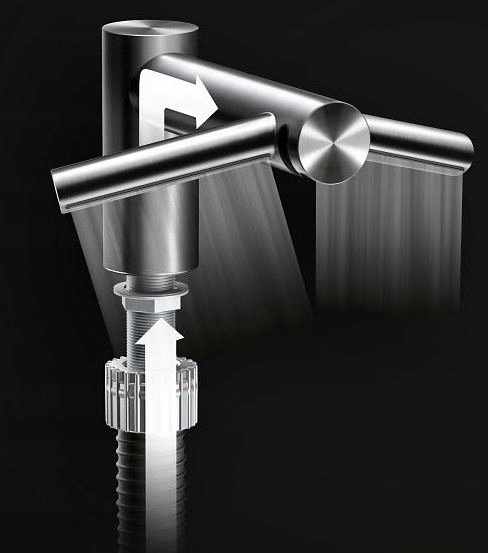 Дайсон устанавливается на смеситель для умывальника или на столешницу, если умывальник встраиваемый