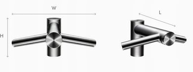 - Расстояние между смесителями Dyson Airbalde, установленными рядом друг с другом, должно составлять мин. 580 мм