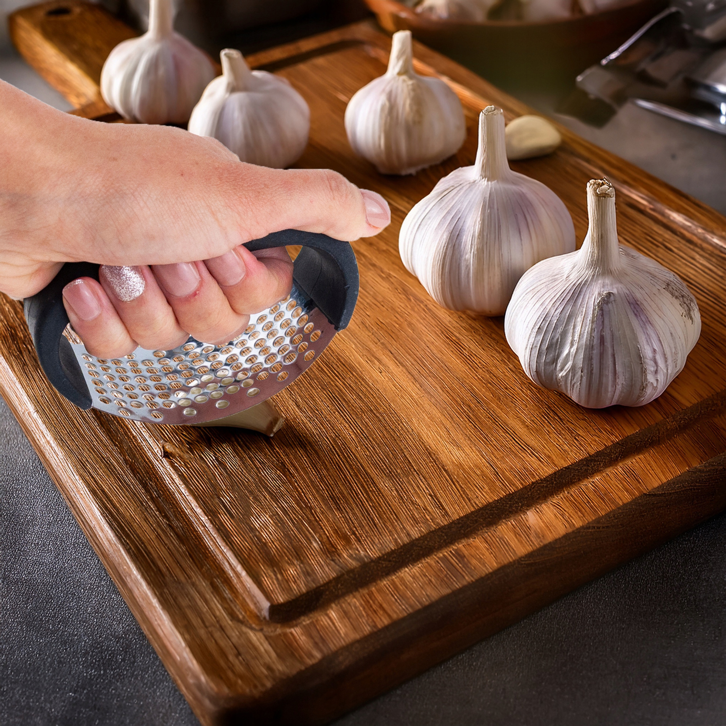 ✅ Практический инструмент: Позволяет быстро и легко раздавить чеснок, сохраняя его полный аромат и вкус.