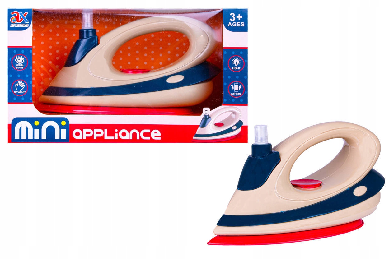Игрушка имеет емкость для воды, кнопки, соответствующие кнопкам настоящего утюга, и ручку для установки соответствующей «температуры глажки», расположенную под ручкой. Утюг имеет идеальную отделку, а благодаря ярким цветам ребенок с удовольствием с ним будет играть.