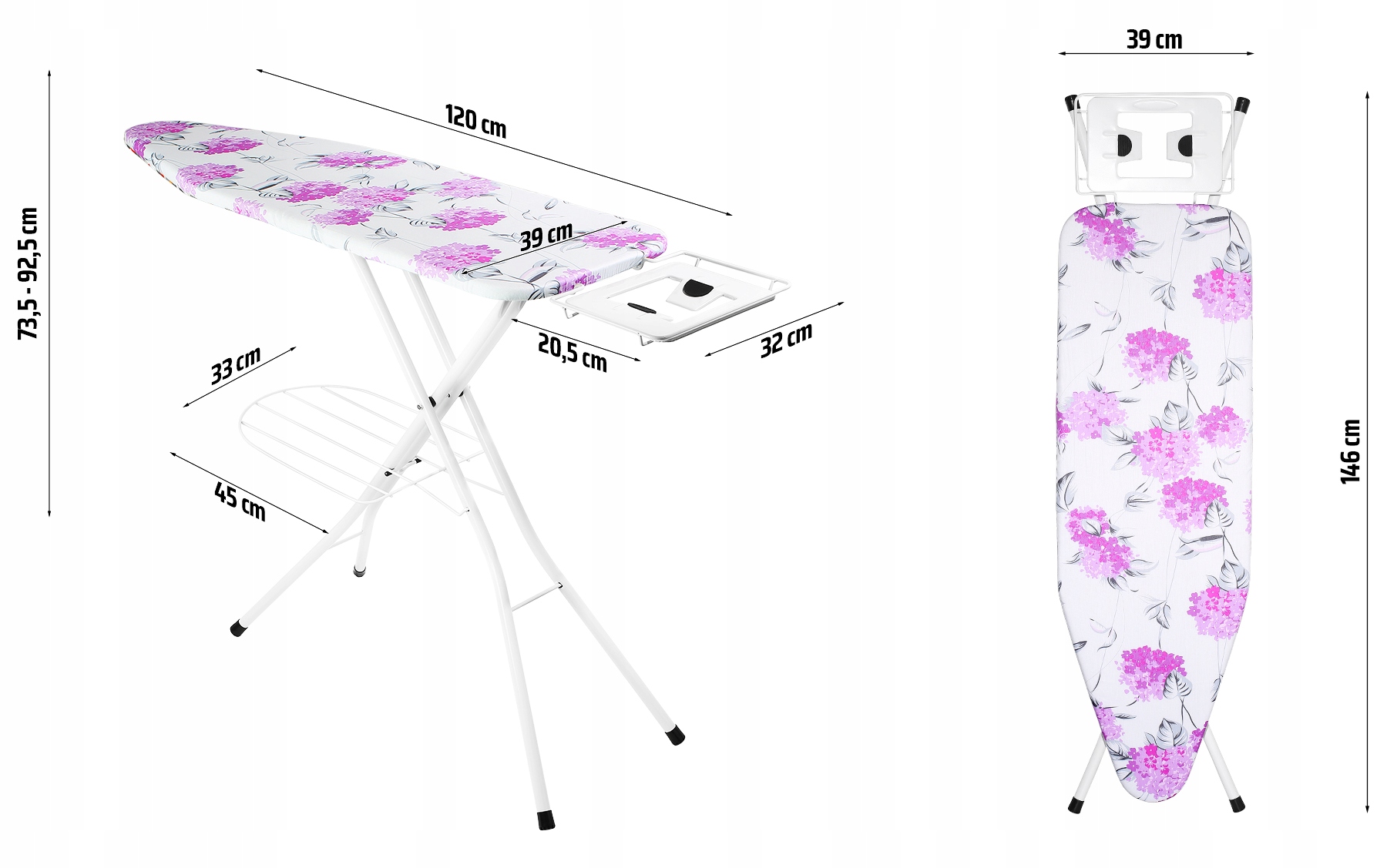- Размеры доски в разложенном виде: 146 x 39 x 92,5 см.