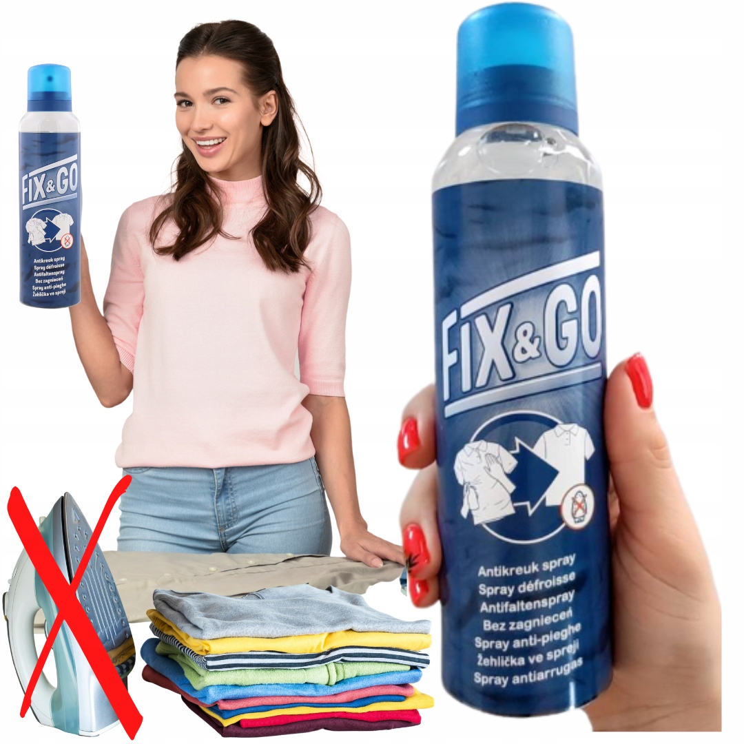 Спрей для глажки Fix & Go не может заменить традиционный утюг. традиционный утюг, но является прекрасным дополнением или альтернативой в ситуациях, когда у вас нет доступа к утюгу или вы не хотите им пользоваться. Спрей особенно хорошо воздействует на повседневную одежду, такую как футболки, брюки и блузки.
