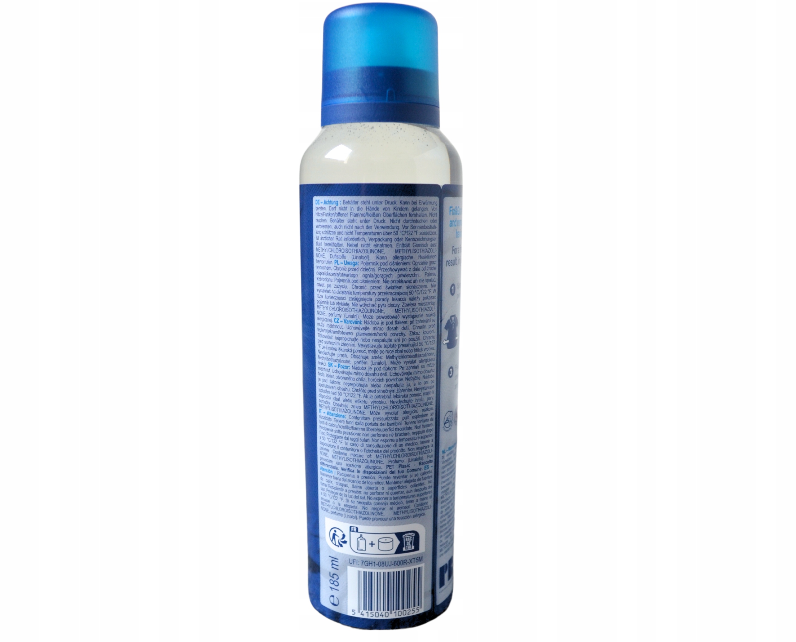 Спрей для глажки Fix & Go подходит для большинства натуральных и синтетические материалы, такие как хлопок, лен, полиэстер или вискоза. Однако он не подходит для деликатных тканей, таких как шелк, шерсть или кожа. Перед использованием спрея всегда проверяйте этикетку с инструкциями по стирке.