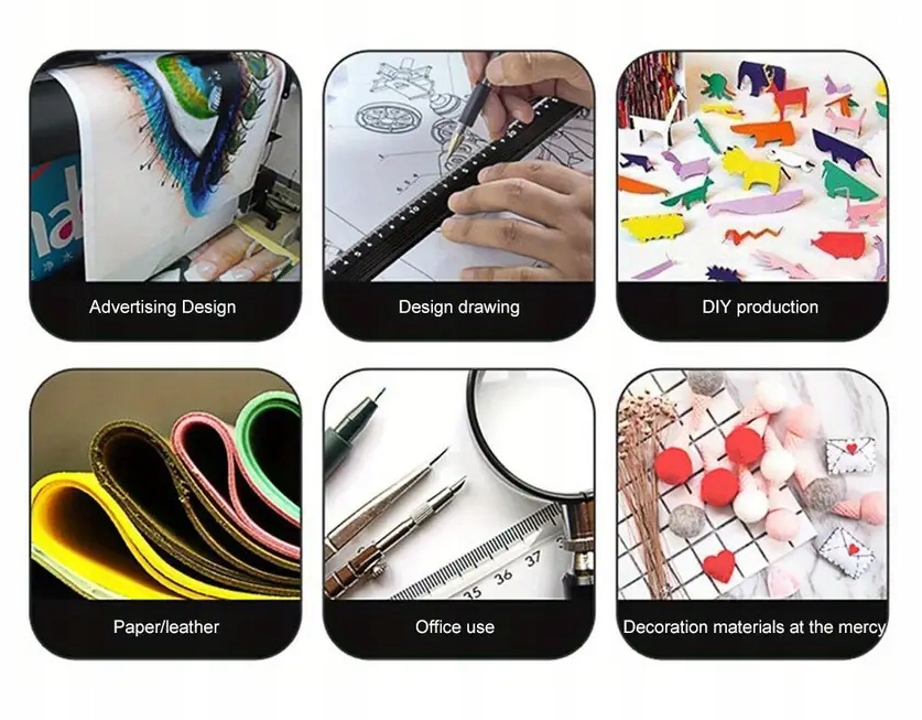 идеально подходит при разрезании длинных секций, например, картон, бумага или пластика. Это также хорошо работает с техническими рисунками и деревообрабатыванием.