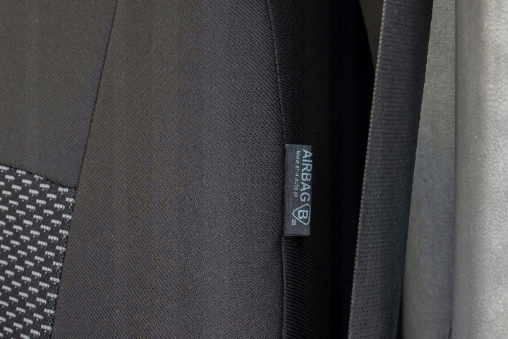 Комфортный сериал изготовлен из высококачественной обивки в темно -сером/графите . Материал (100% полиэфир) ламинирован с 3 -миллиметровой полиуретановой пеной и подкладкой, предотвращает крышки и раздавливание крышек, а его гибкость позволяет очень хорошо посадить сиденья. Передние сиденья были сшиты в две части - отдельно на сиденье и отдельно на спинке (если только дизайн кресла не предотвратит его) - обложки первого ряда не загружаются во время использования. На передних сиденьях был включен шов подушек безопасности (сертификат пимота)
