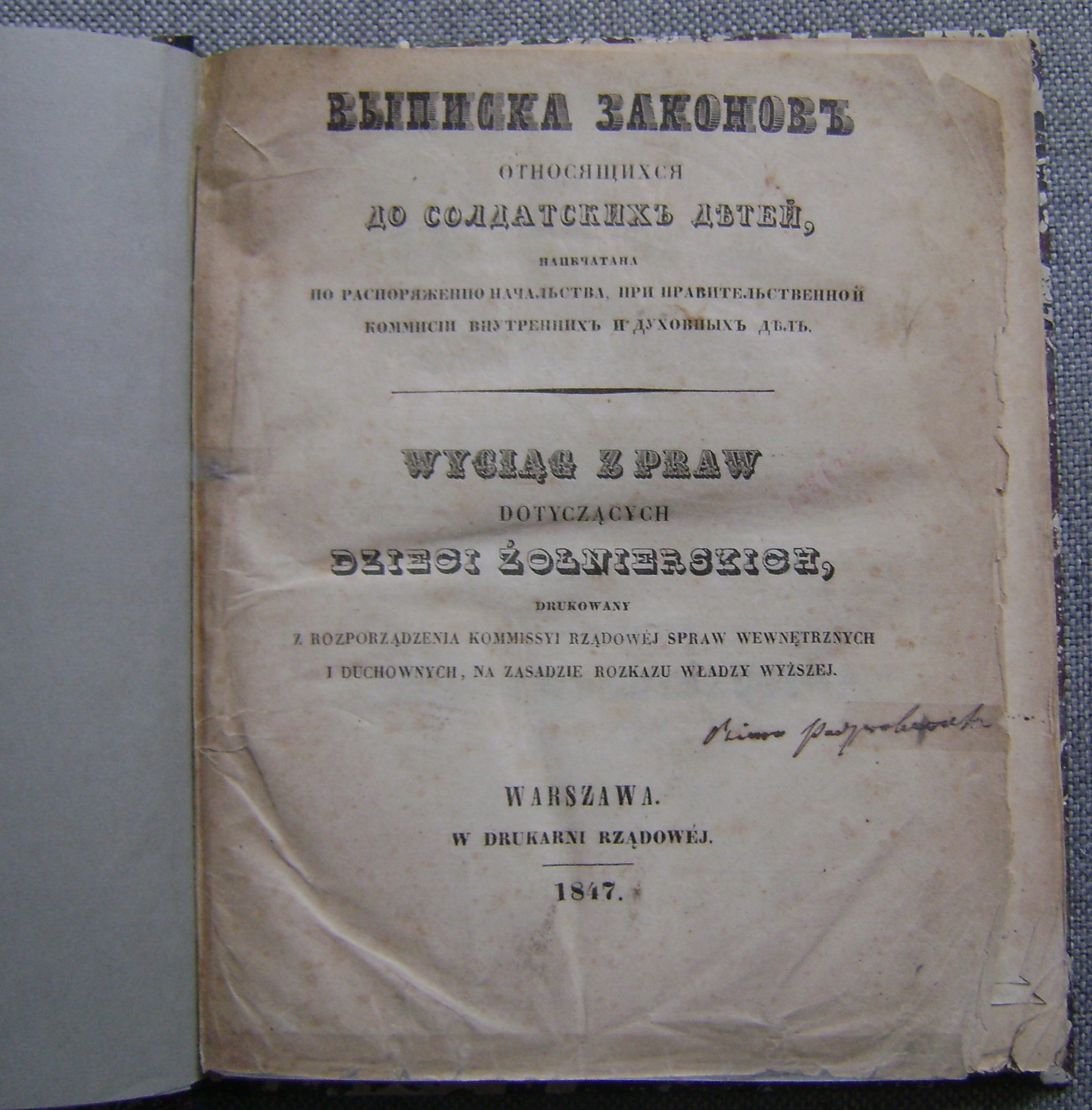 PRAWA DOTYCZĄCE DZIECI ŻOŁNIERSKICH- wyd.1847