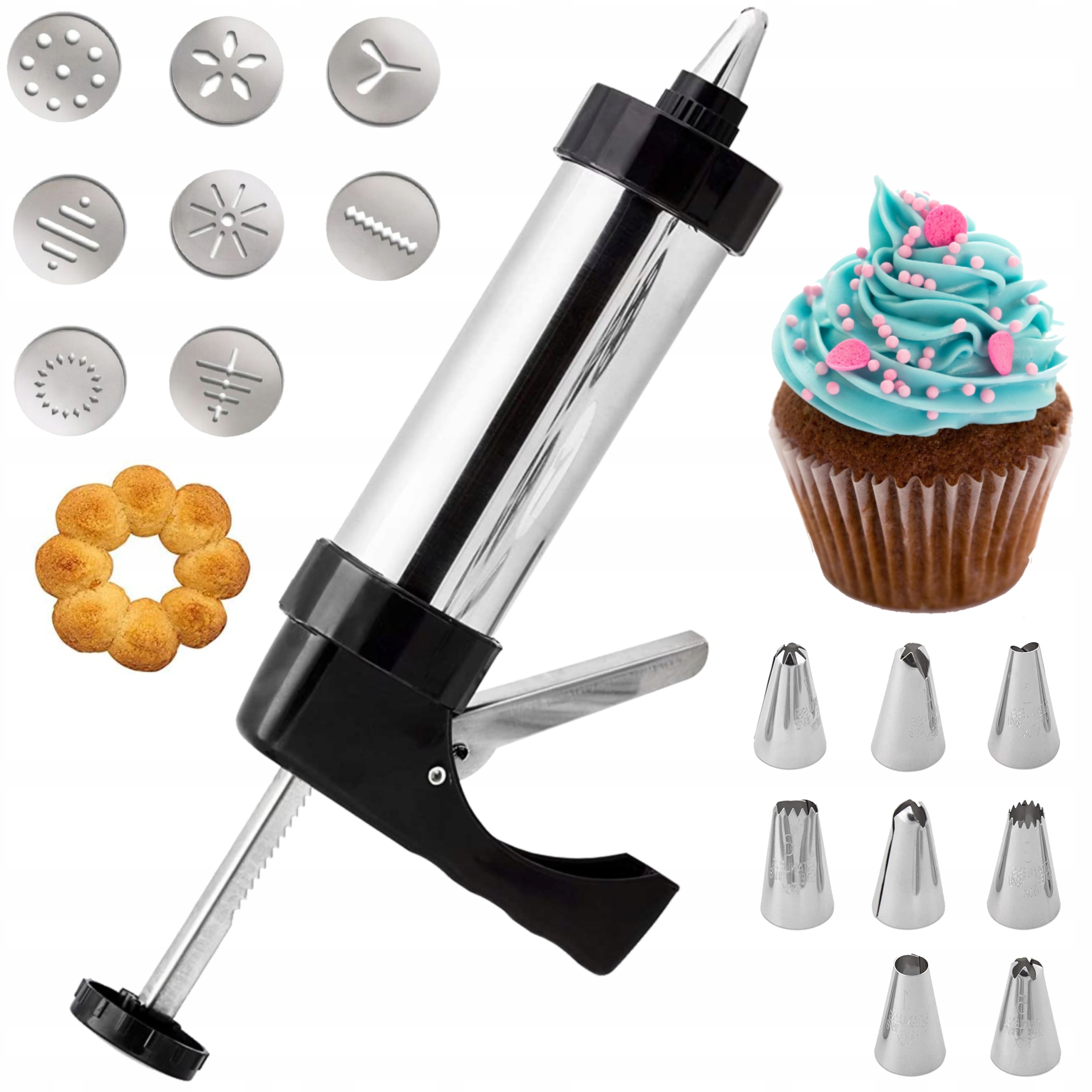 - В комплект входят 8 дисков для приготовления печенья и 8 насадок для украшения.
