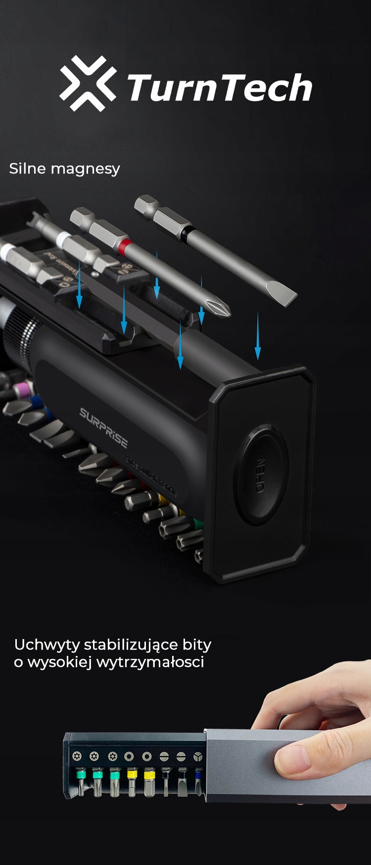 - Функциональность: Магнитный механизм облегчает замену и эксплуатацию бит.