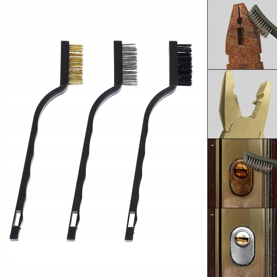 Прецизионные проволочные щетки для чистки 3 шт., Сталь, Латунь, Нейлон