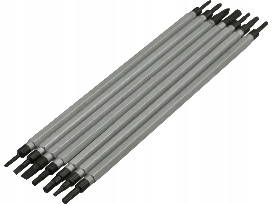 - В комплекте отвертки: 7 шт., биты двусторонние 120 мм, размеры: плоская 1,5, 2,0, 3,0 мм, крестовая PH000, PH00, PH0, Torx T5, T6, T7, T8, шестигранник H1,5, H2, H2,5, H3