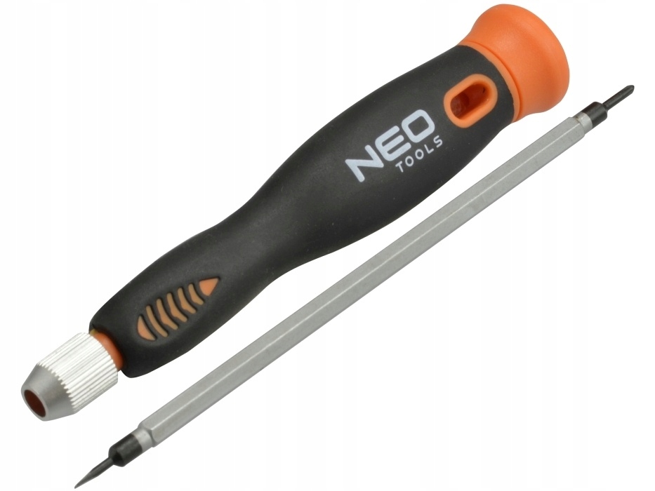 В набор прецизионных отверток NEO входят рукоятка и 7 двусторонних бит диаметром 120 мм (плоские, крестовые, Torx и шестигранные). Магнитные наконечники изготовлены из чрезвычайно прочной хромомолибденовой стали. Вращающийся колпачок в ручке позволяет точно затягивать винты. Ручка из двойного материала устойчива к химическим веществам, маслам и жирам. Качество инструмента подтверждено сертификатом TÜV и 25-летней гарантией производителя. Бренд NEO оправдывает ожидания профессионалов.
