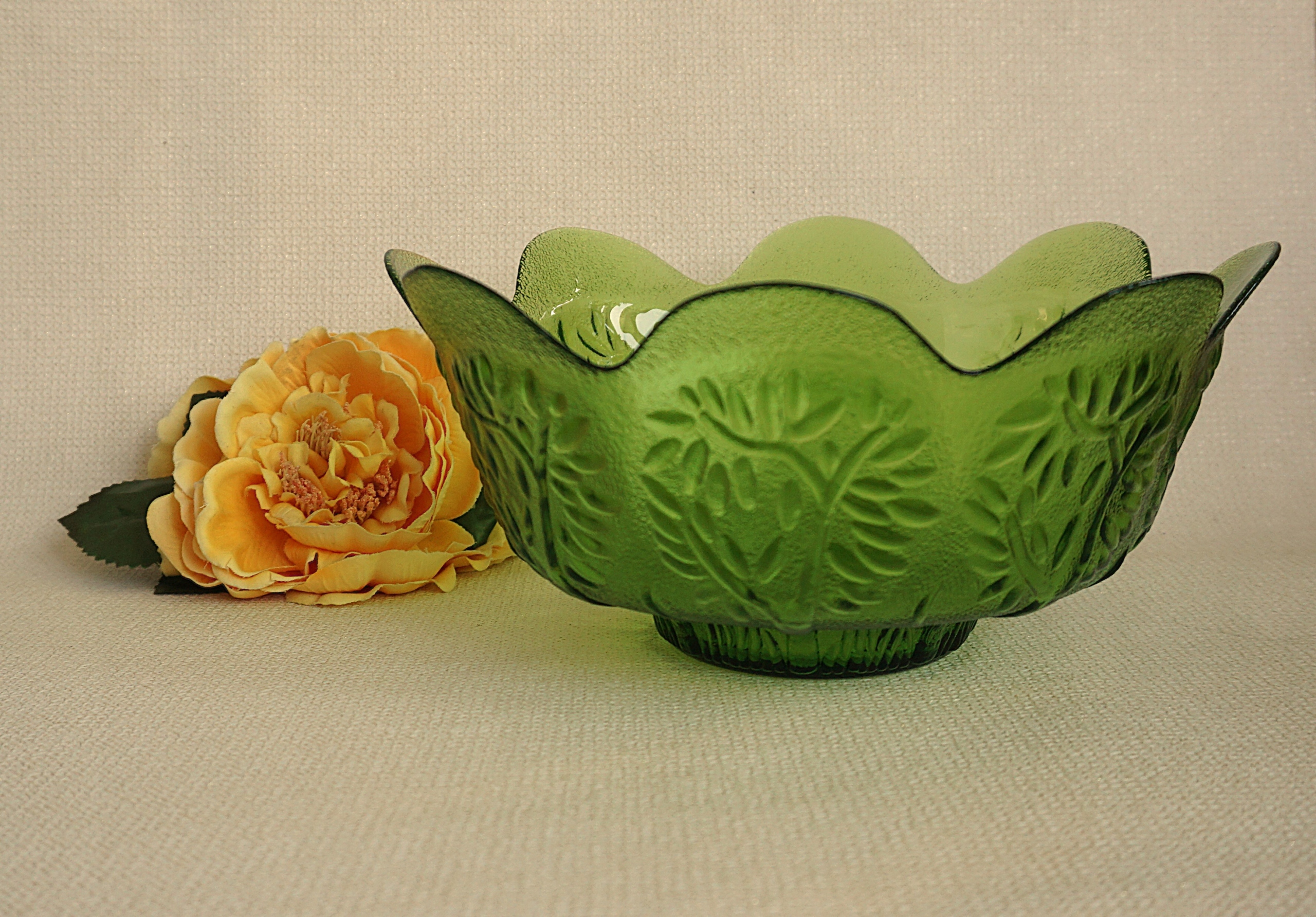 Красивая, большая салатная чаша! Зеленое стекло! Деревья!