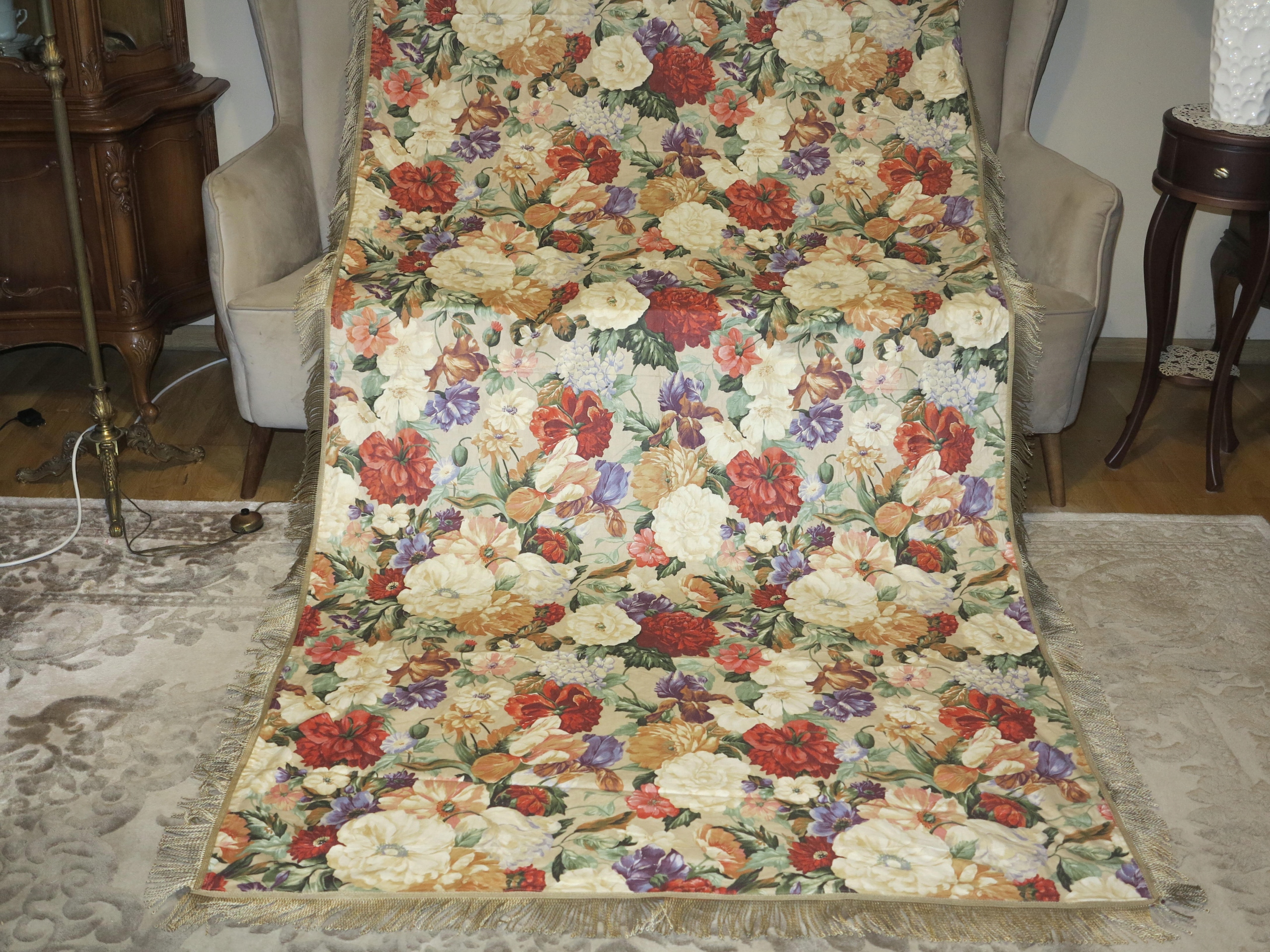 Красивый английский очень большая скатерть в садовых цветах. Хлопковая атласная скатерть. Очень яркие и выразительные цвета.