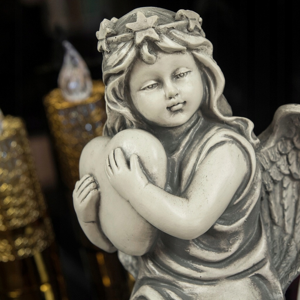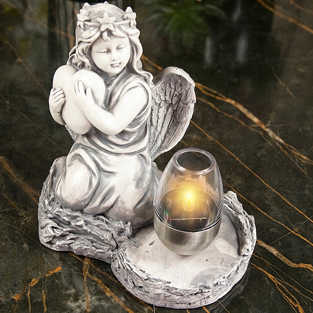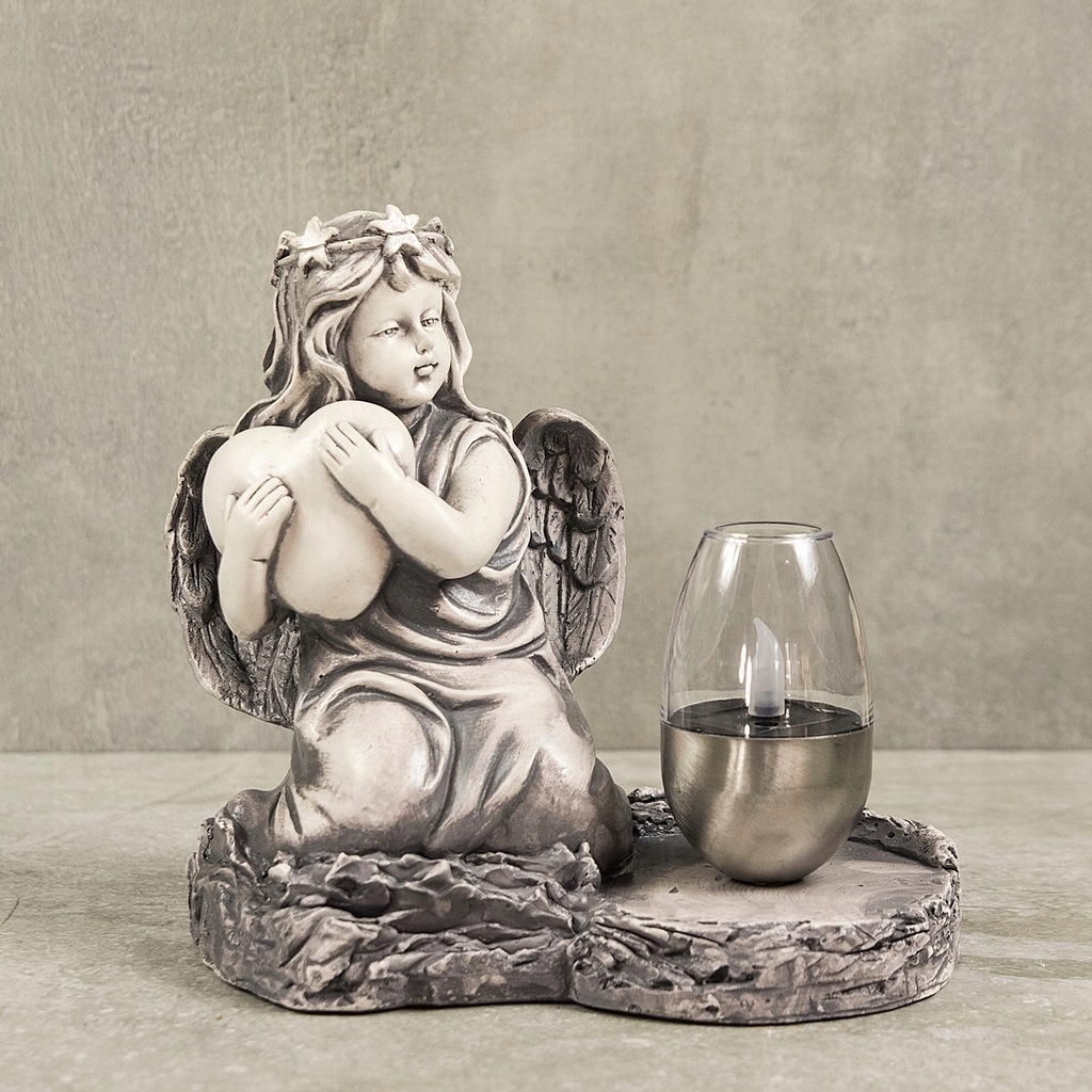 ➡️ Декоративная гипсовая садовая фигурка-надгробие со светодиодной лампой в форме ангела