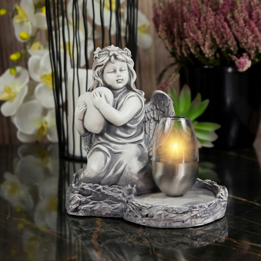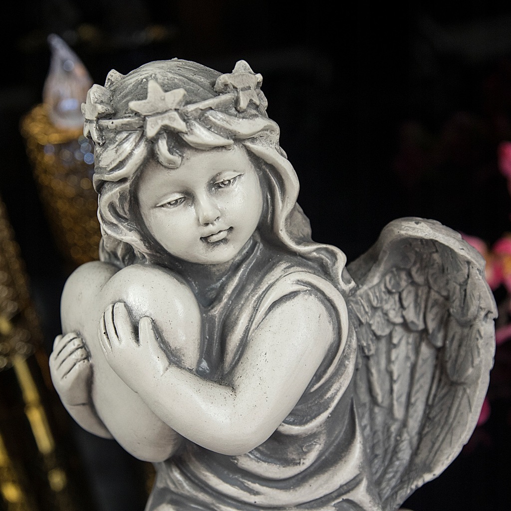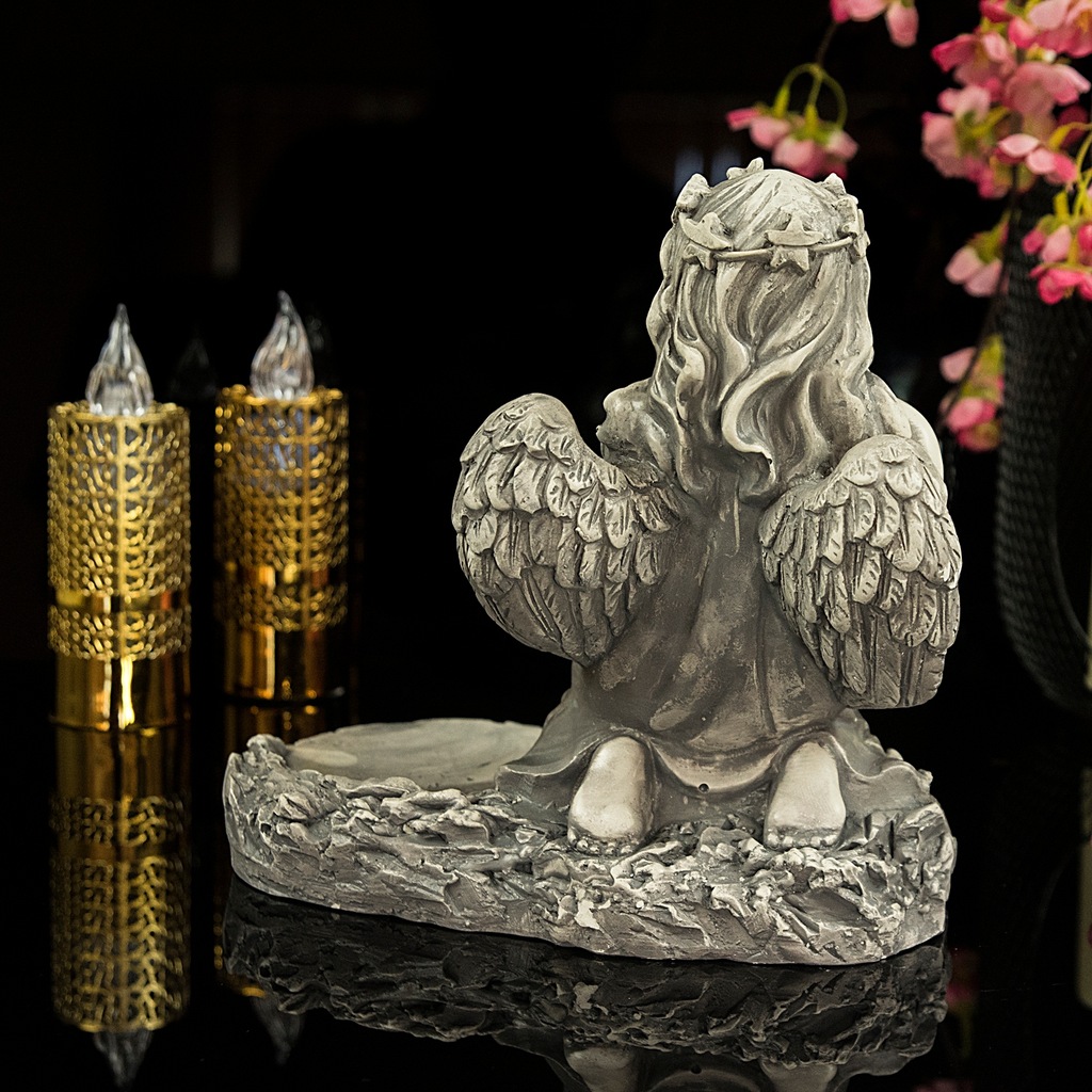 ➡️ Декоративная гипсовая садовая фигурка-надгробие со светодиодной лампой в форме ангела