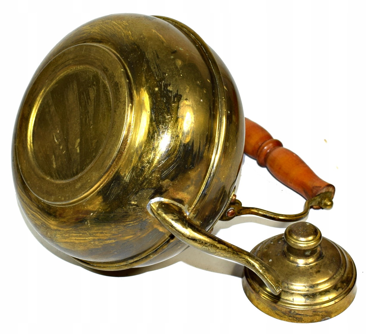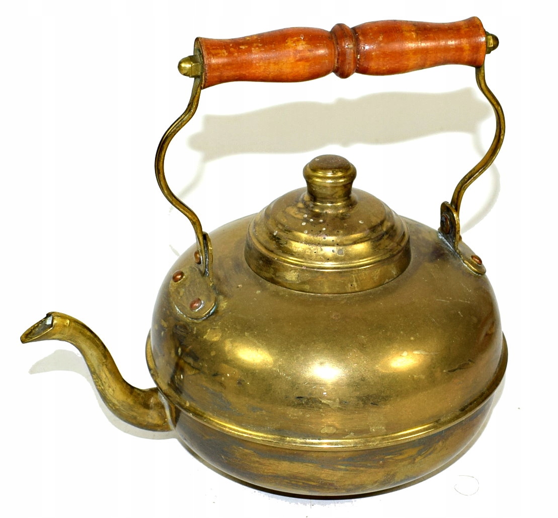 , вероятно, сделанный из алюминия и покрытой медной, конечно, интересной формы. Деревянная ручка.