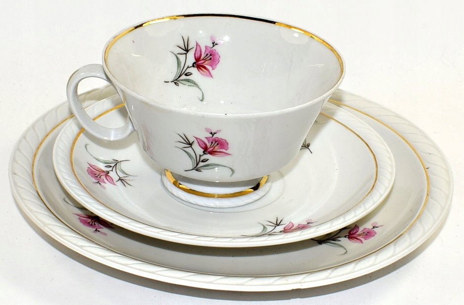 Красивый старый завтрак набор для коллекции, изготовленной из белого фарфора , украшенный золотистыми огнями . Очень красивый и элегантный набор и, что самое важное, редкое-такая блестящая световая драгоценный камень по рекламной цене.
