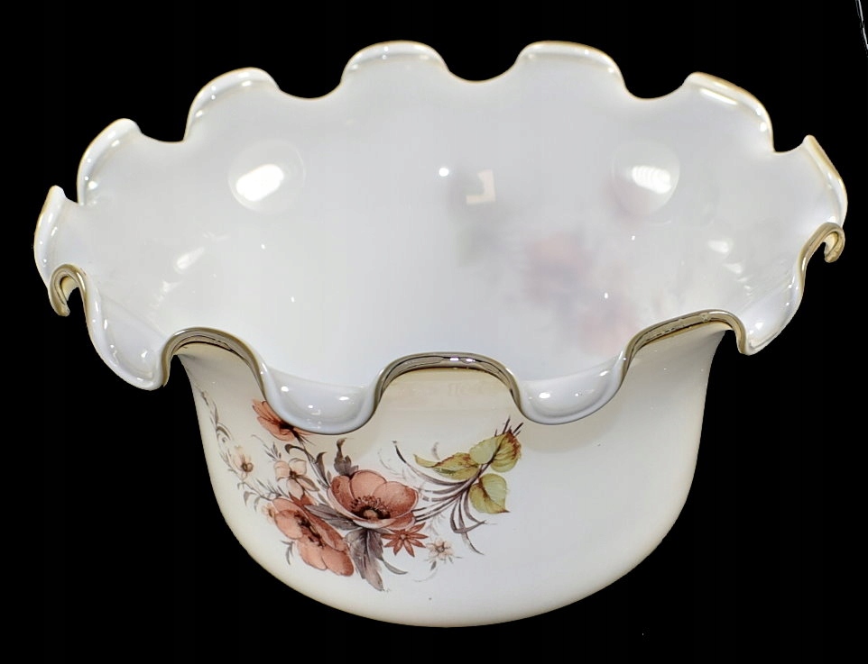Красивый, старый абажур для стекла. Чрезвычайно красиво сформировано, закончен с оборкой. Молоковое стакан и двусторонний рисунок . Редкая копия старой лампы, настенной лампы или люстры :).