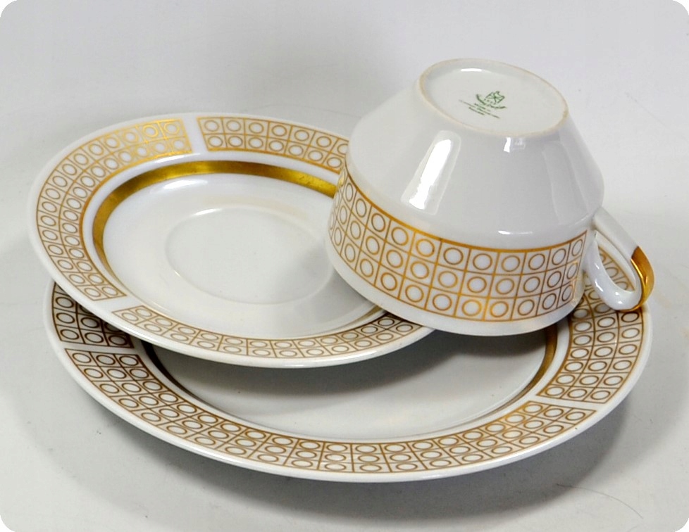 Красивый старый завтрак набор для коллекции, изготовленной из белого фарфора , украшенного золотым горохом . Очень красивый и элегантный набор и, что самое важное, редко-такая блестящая драгоценный камень по рекламной цене и много золота.