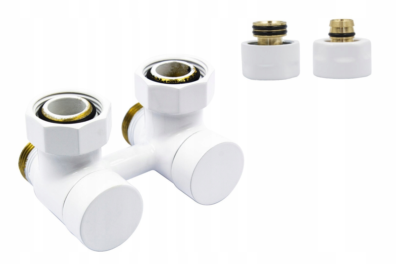Двухтрубные угловые подключения серии ПРЕМИУМ предназначены для радиаторов с нижним подключением, встроенной клапанной вставкой (боковое подключение) и подключением с шагом 50 мм..