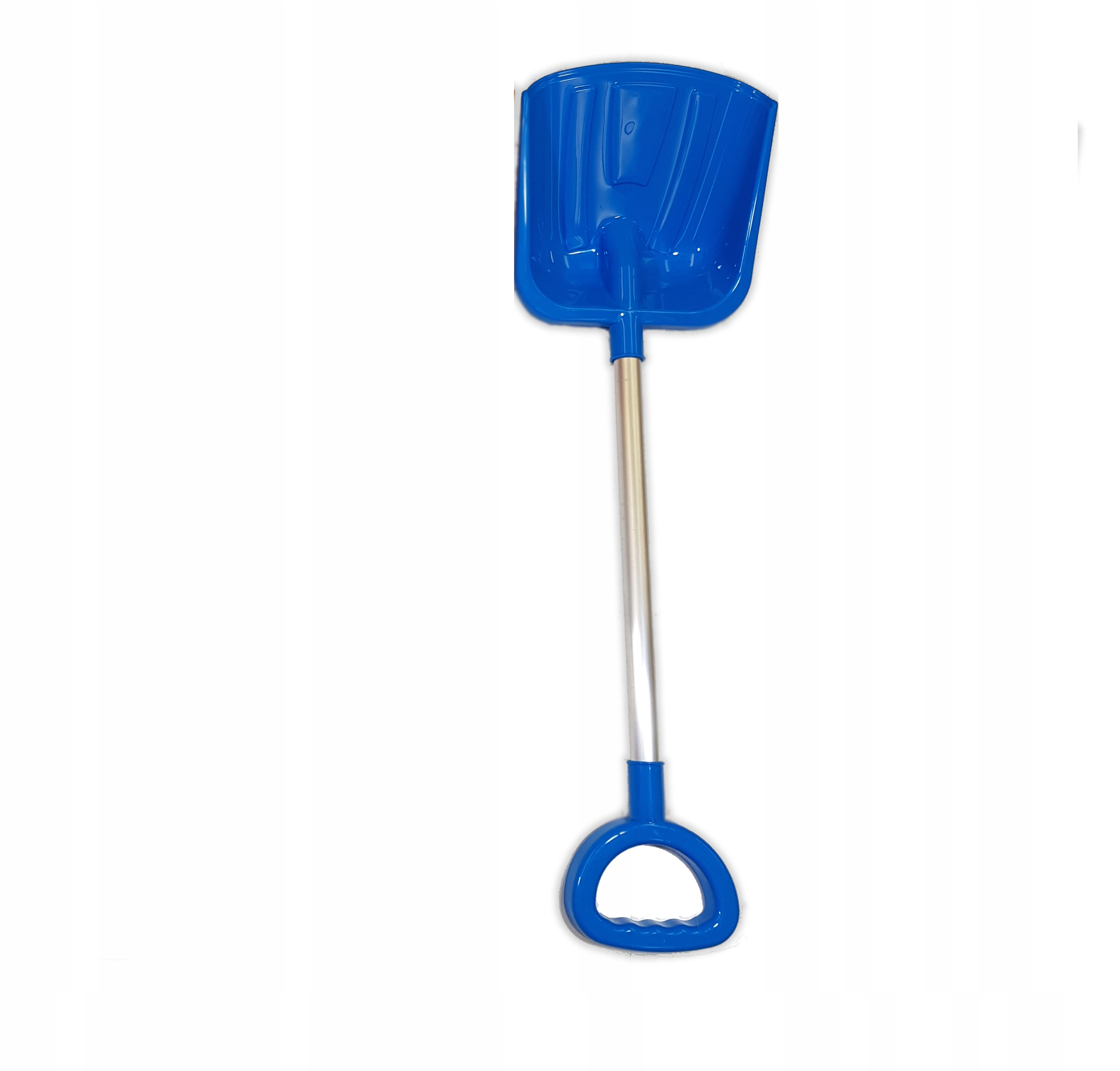 Синяя лопатка премиум-класса имеет алюминиевую палку с пластиковой ручкой. Длина лопаты примерно 63 см.