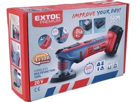 Медь, алюминий, негаированные ногти, сплавы мягких металлов) для дальнейшего расмотки, шлифования и царапин меньшего размера. Этот инструмент позволяет вам выполнять точную работу в усердной работе, чтобы добраться до мест, таких как вырез в углах мебели, настенных плиток и т. Д. Обычная операция Pro составляет достаточное или две батареи 2000 мах, которые можно быстро заряжать в быстрого зарядного устройства, более требовательной или более длительной работы, мы рекомендуем большие батареи с мощностью 4000–8000 мАч. Аккумулятор может использоваться во всех типах инструментов из серии Extol Share20V. Благодаря литий-ионной технологии, ее можно взимать в любое время без снижения своей мощности. Литий-ионная батарея очень медленно теряет свою энергию под воздействием самообслуживания и длится долго заряжен и готова к использованию.