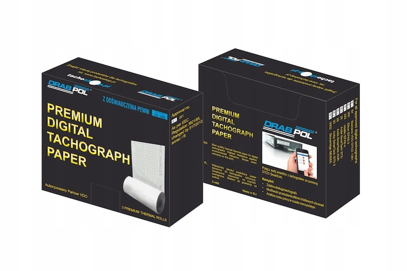 DTCO Premium Paper с одобрением типа. Самое высокое качество, гарантированное Драбполом. Предоставляет читабельность сохраненных данных за период, требуемый законом.