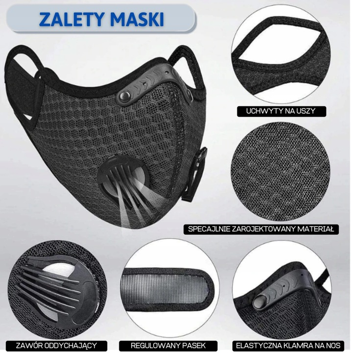 Anti -Smog Sports Mask предназначена для людей, которые ценят комфорт, комфорт для дыхания и безопасность. Заменяемые активные углеродные фильтры обеспечивают эффективную фильтрацию, а регулируемая длина липучки и носового зажима помогает соответствовать маске с лицом.