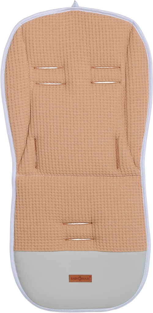 Фирменный вкладыш Babymam обеспечивает максимальный комфорт и безопасность. Благодаря мягкому наполнителю снижает толчки при ходьбе по неровным поверхностям. Ваш малыш всегда сможет наслаждаться неограниченным комфортом во время прогулок, особенно во время сна на свежем воздухе. Вставка защитит обивку от загрязнения. Используемый дизайн придаст вашей коляске стильный вид.