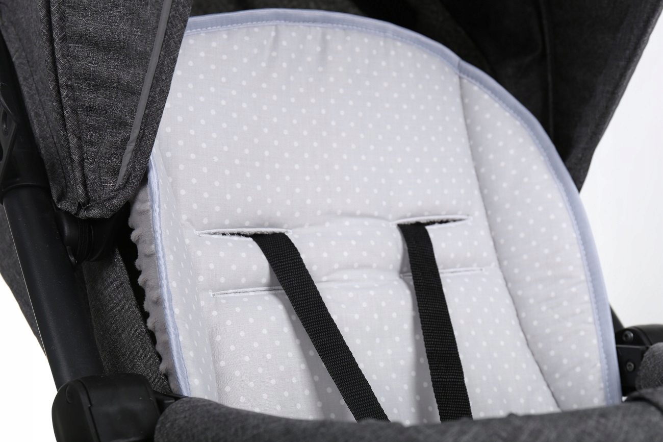 Фирменный вкладыш Babymam обеспечивает максимальный комфорт и безопасность. Благодаря мягкому наполнителю снижает толчки при ходьбе по неровным поверхностям. Ваш малыш всегда сможет наслаждаться неограниченным комфортом во время прогулок, особенно во время сна на свежем воздухе. Вставка защитит обивку от загрязнения. Используемый дизайн придаст вашей коляске стильный вид.