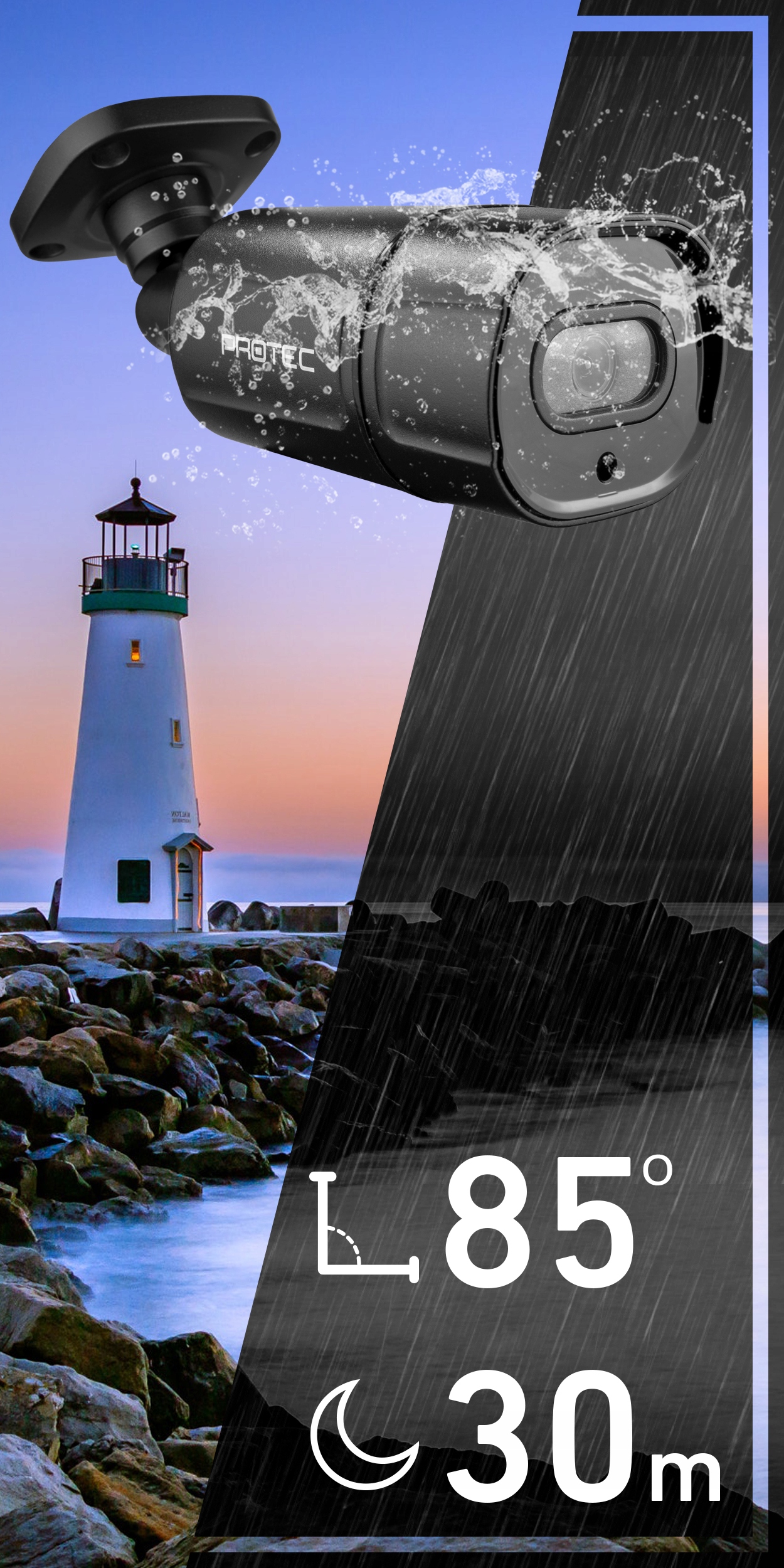 4x профессиональная камера наблюдения 8MPX позволяет записывать наблюдаемую территорию в очень высоком разрешении, сохраняя при этом широкий угол обзора.