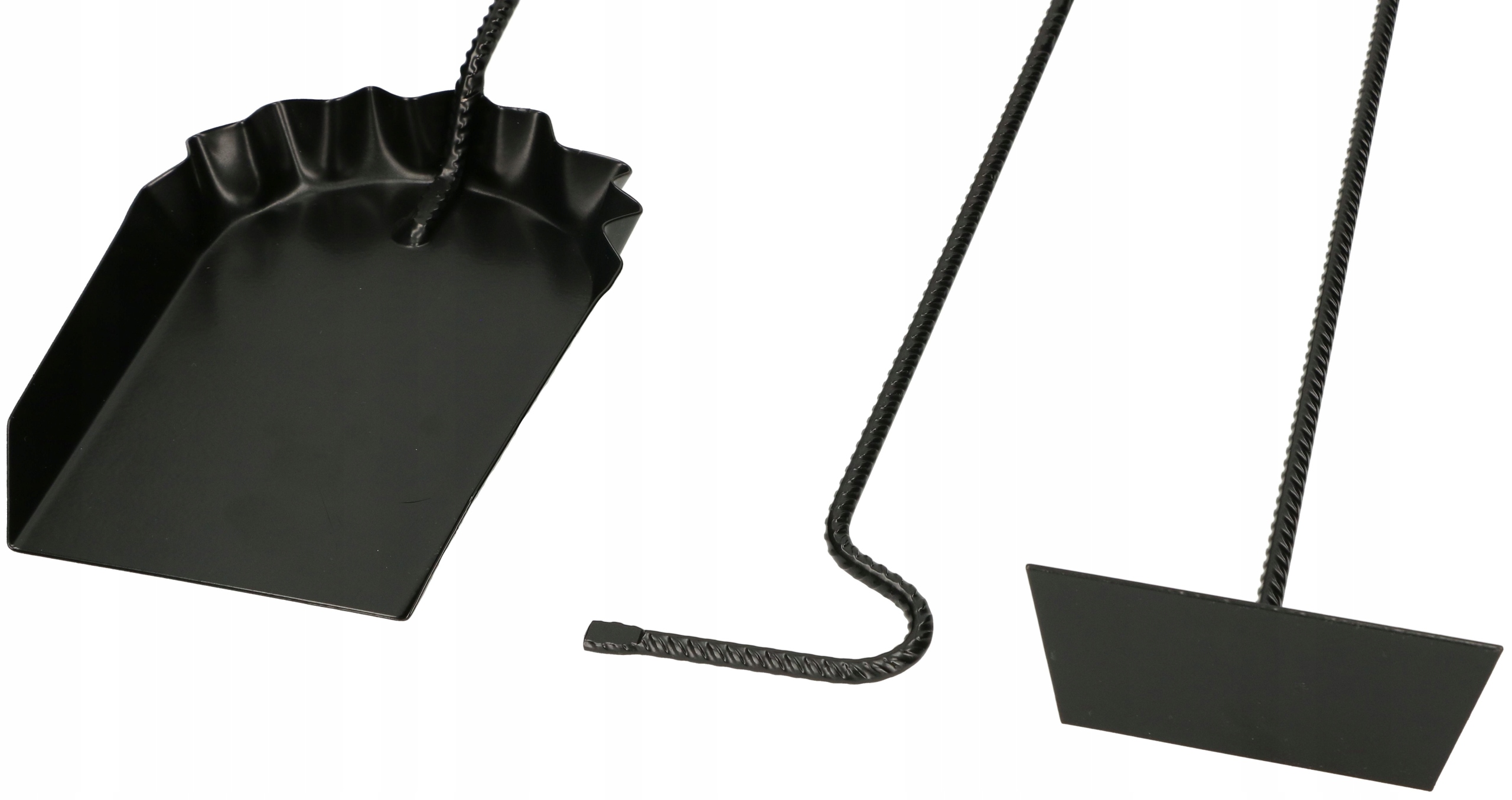 - В комплект входят инструменты, необходимые для чистки камина – кочерга, скребок, угольная лопата, оборка и угольные грабли.